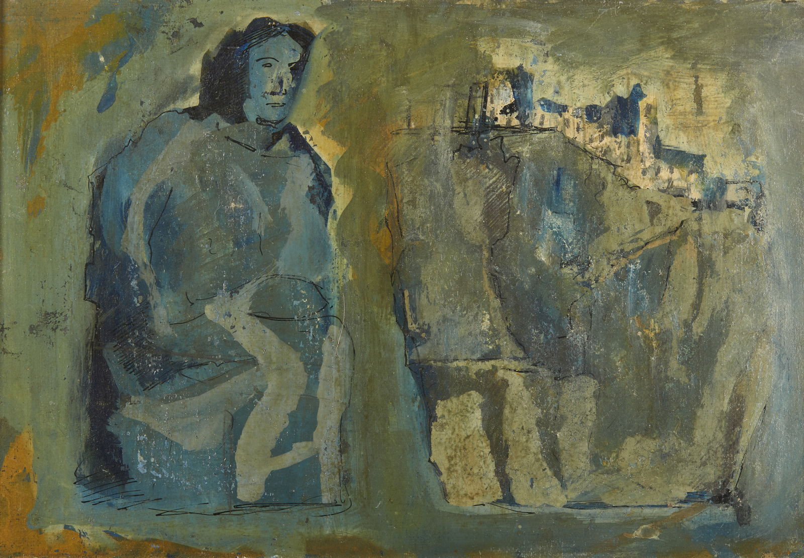 SIRONI MARIO (1885 - 1961) Composizione. china e tempera su carta applicata su tela. Cm 53,40 x 36,80. Opera archiviata presso l’Associazione per il Patrocinio e la Promozione della Figura e dell’Opera di Mario Sironi, Milano, come da documentazione fotografica allegata all'opera riportante il relativo numero d'inventario la datazione. Autentica su fotografia di Francesco Meloni. Pubblicazioni: Paese sulla rupe, Tav 75; Mario Sironi, Palazzo Corsini, Firenze, 1969. Esposizioni: Mario Sironi, Palazzo Corsini, Firenze, 1969. Provenienza: Collezione Besner - Decca, Piacenza. 1954 circa.