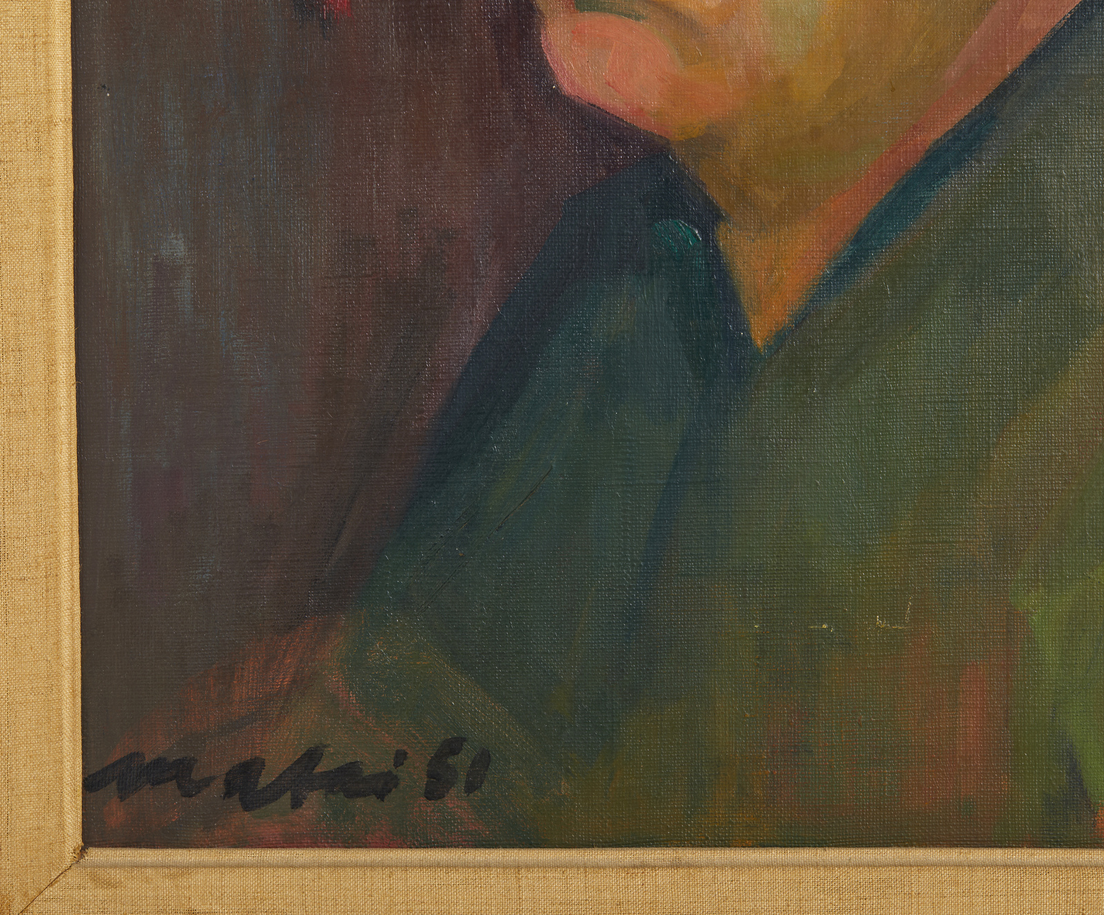 MAFAI MARIO (1902 - 1965) Autoritratto. 1951. Olio su tela . Cm 50,00 x 60,00. Firma e anno in basso a sinistra. Al retro cartigli XXVI Biennale Internazionale d'Arte, Venezia e Esposizioni: XXVI Biennale Internazionale d'Arte, Venezia, 1952. Provenienza: Collezione privata, Roma. Pubblicazione: Mario Mafai a cura di Valentino Martinelli, Editalia, Roma, p.148 n.88. Lievi difetti. Cornice presente
