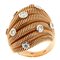 Anello in oro giallo, sommità traforata e bombata, composta da onde, diamanti taglio brillante per complessivi ct 0,45 ca montati entro castoni in oro bianco