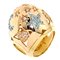 Anello in oro giallo, sommità a forma di cupola, decorato con stelle e cuori in diamanti taglio brillante per complessivi ct 0,39 ca e topazi azzurri taglio rotondo