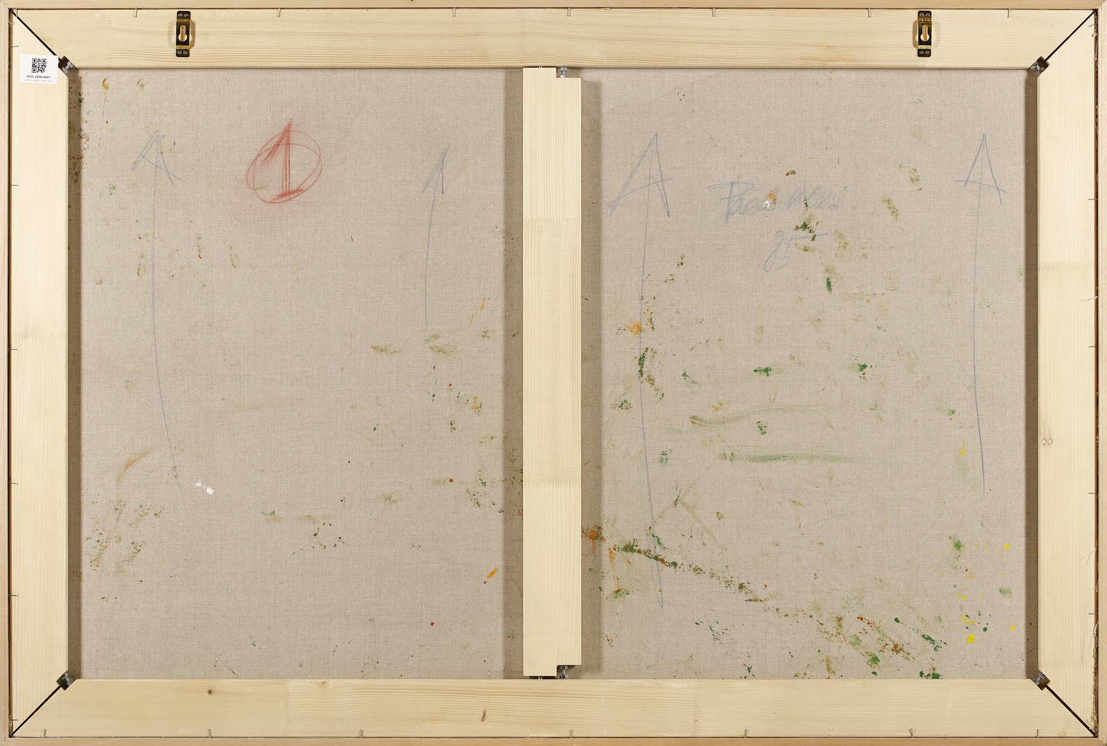 MASI PAOLO (n. 1933) Senza titolo. 1985. Tecnica mista su tela. Cm 150,00 x 100,00. Al retro firma e anno. Autentica dell'artista su fotografia. Cornice presente
