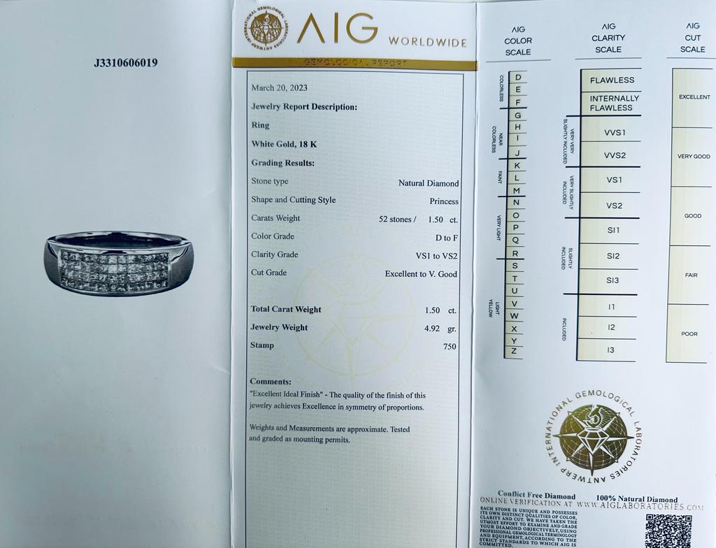 ANELLO IN ORO BIANCO 18K 4.90 GR CON DIAMANTE 1.50 CARATI D-F/VS TAGLIA 6 CERTIFICATO AIG - RNG30308