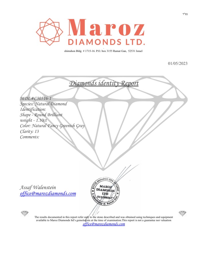 Lotto 51 | DIAMANTE 1,10 CT FANCY GRIGIO VERDOGNOLO - I3 - C30516-1