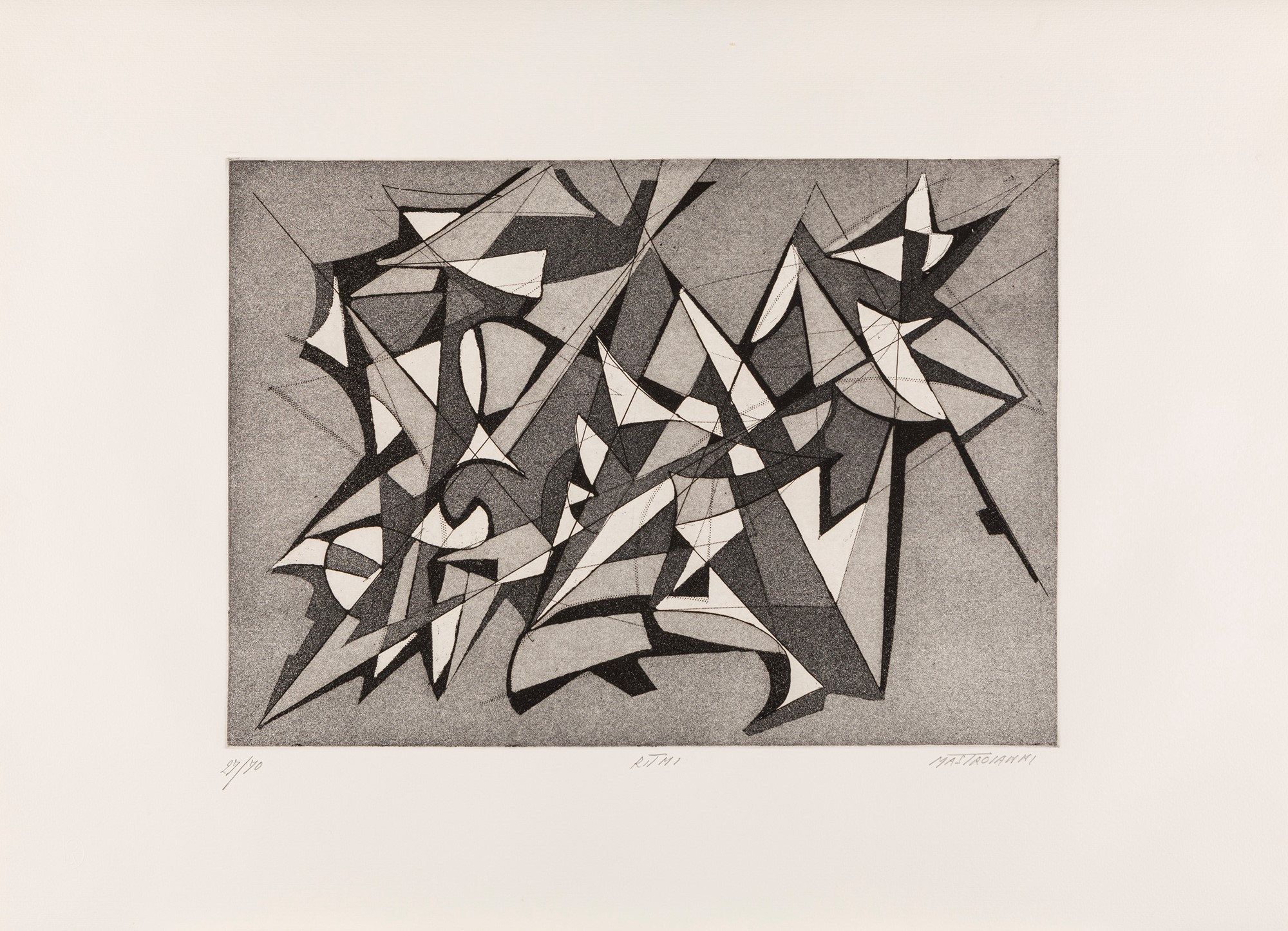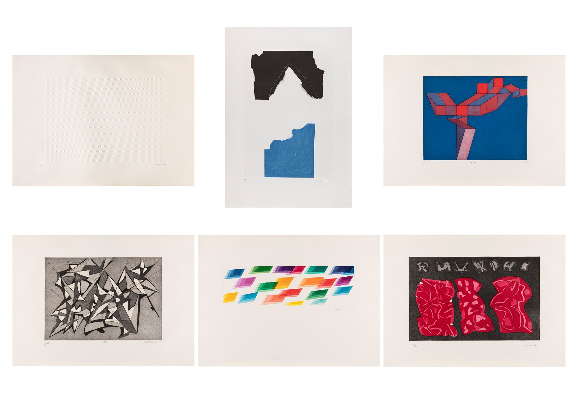 cartella completa di 6 incisioni di E. Castellani, P. Consagra, P. Dorazio. U. Mastroianni, A. Perilli, G. Santomaso, es. 27/70