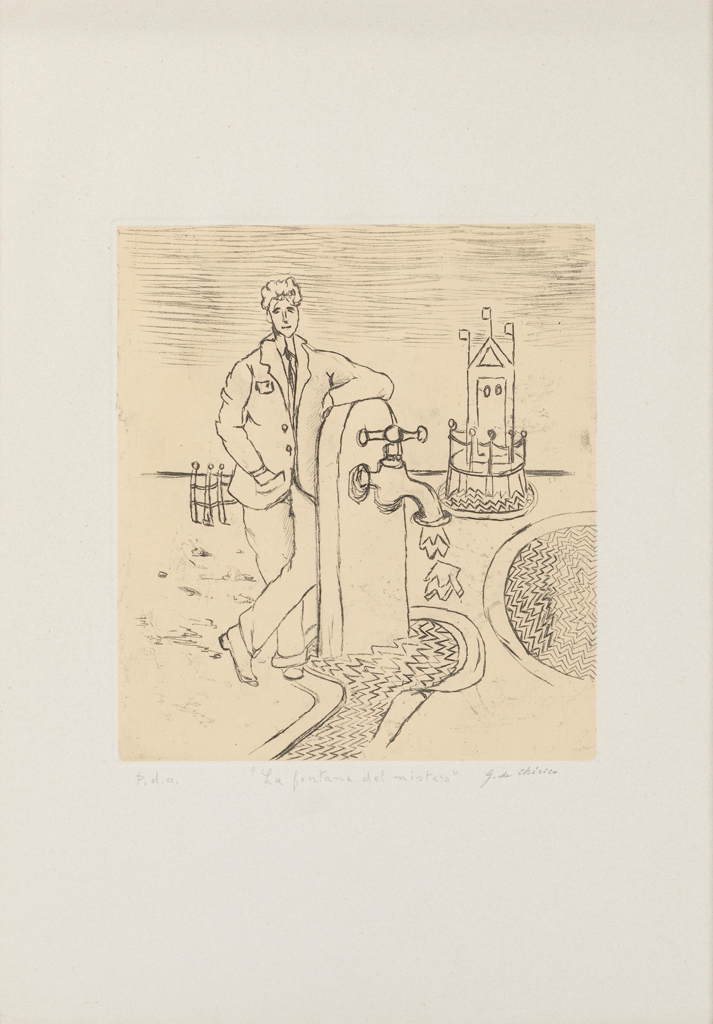 Giorgio de Chirico (Volos 1888-Roma 1978) - La fontana del mistero, 1971