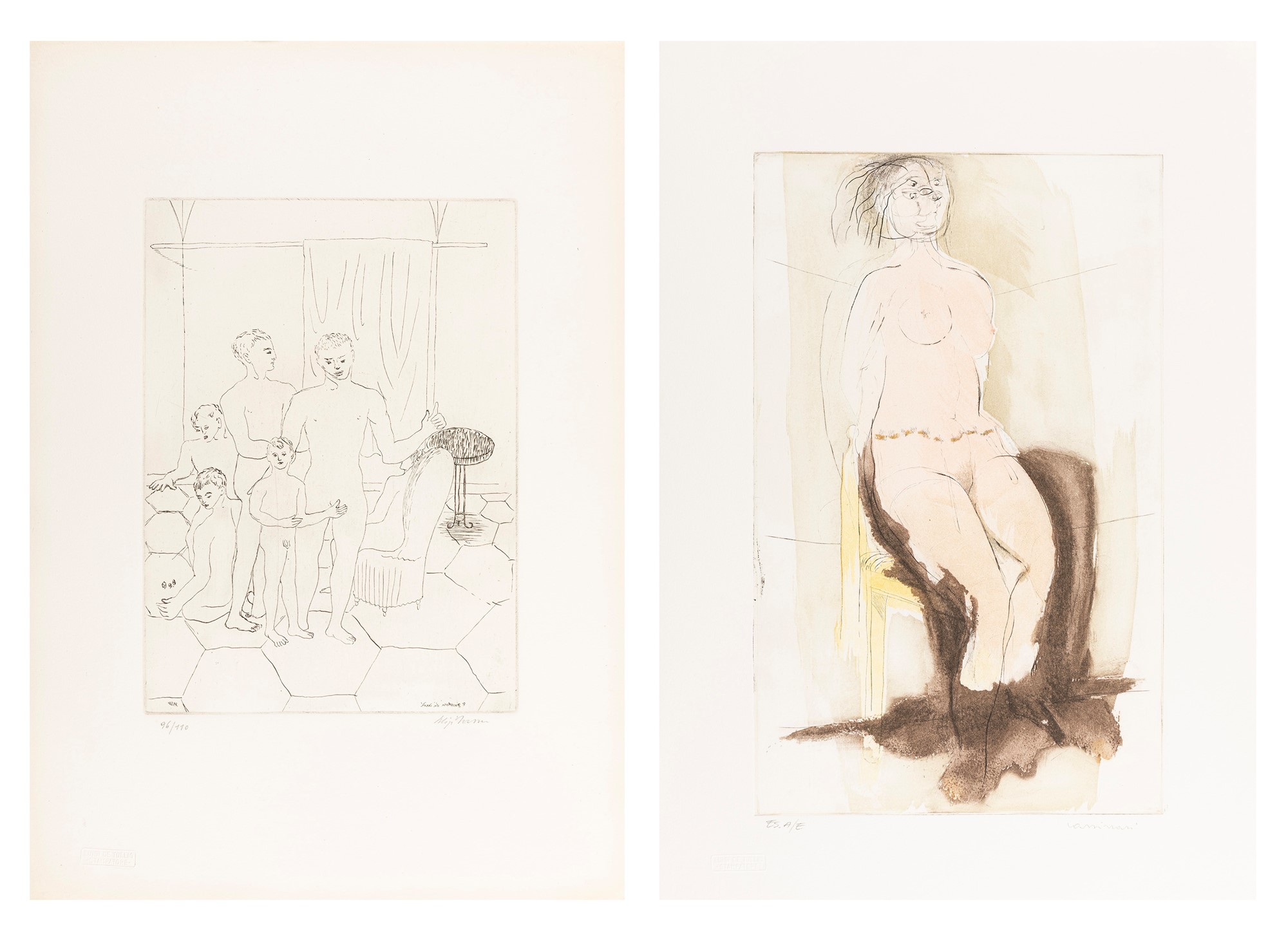 a. acquatinta, acquaforte, es. E/A ; b. acquaforte, es. 96/100