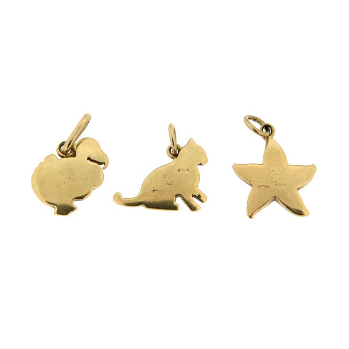 Lotto composto da tre ciondoli firmati "Pomellato", modello "Dodo", raffiguranti una stella, un gatto e un Dodo