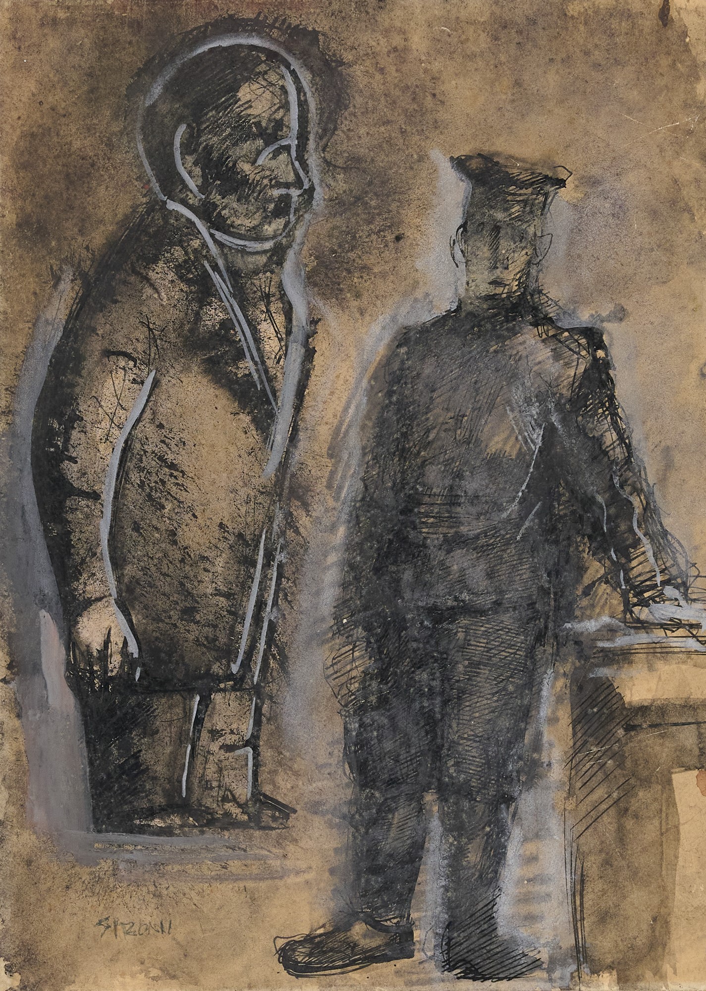 Autentica dell'Archivio "Mario Sironi", a cura della Dott.ssa Romana Sironi, su foto, con timbro "Archivio Mario Sironi" ed Archivio n° 15/3.