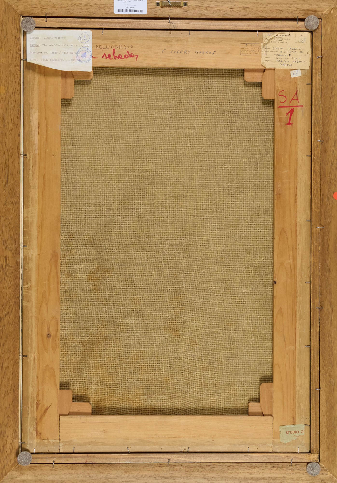 Firmato in basso a destra.Sul verso: Etichetta Arte moderna in Italia 1915-1935, mostra palazzo Strozzi Firenze, dal 26 febbraio al 28 Maggio 1962, con descrizione.Etichetta e timbro associazione Pro Anghiari, con descrizione.Timbro Galleria d'Arte Sant'Ambrogio, Milano