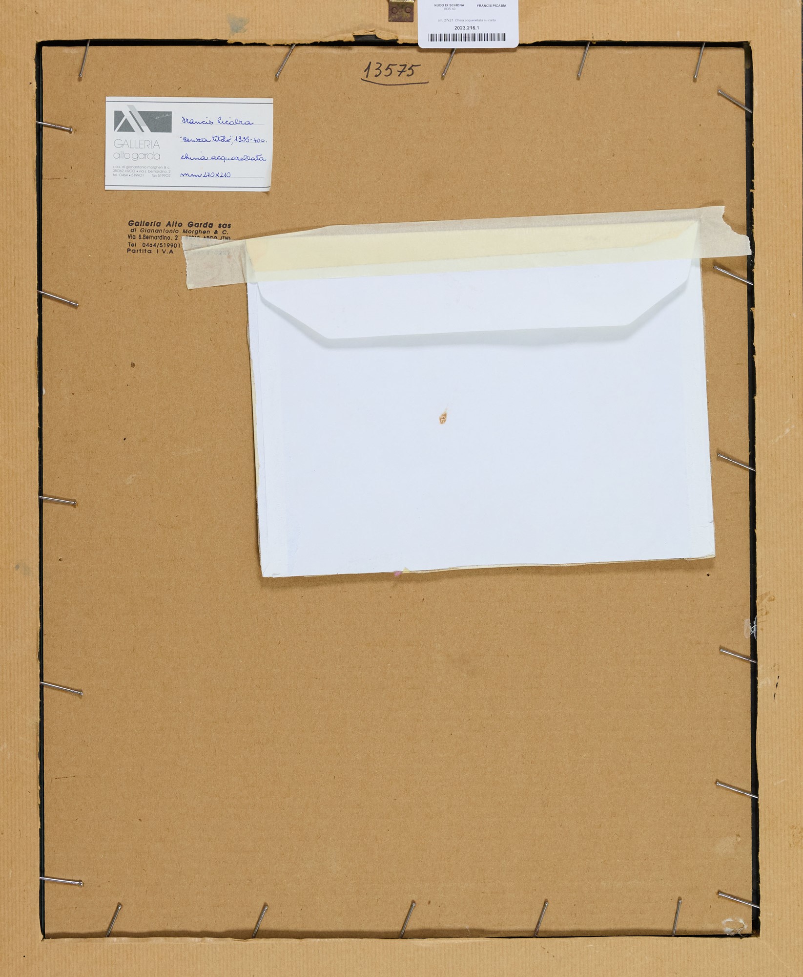Scritto di autenticità di Germaine Everling Picabia in basso a destra.Sul verso: Etichetta e timbro Galleria Alto Garda, TN, con descrizione.