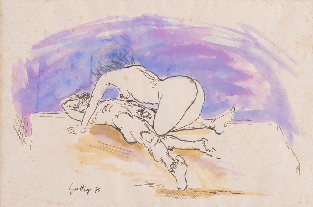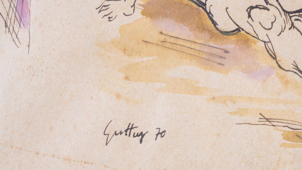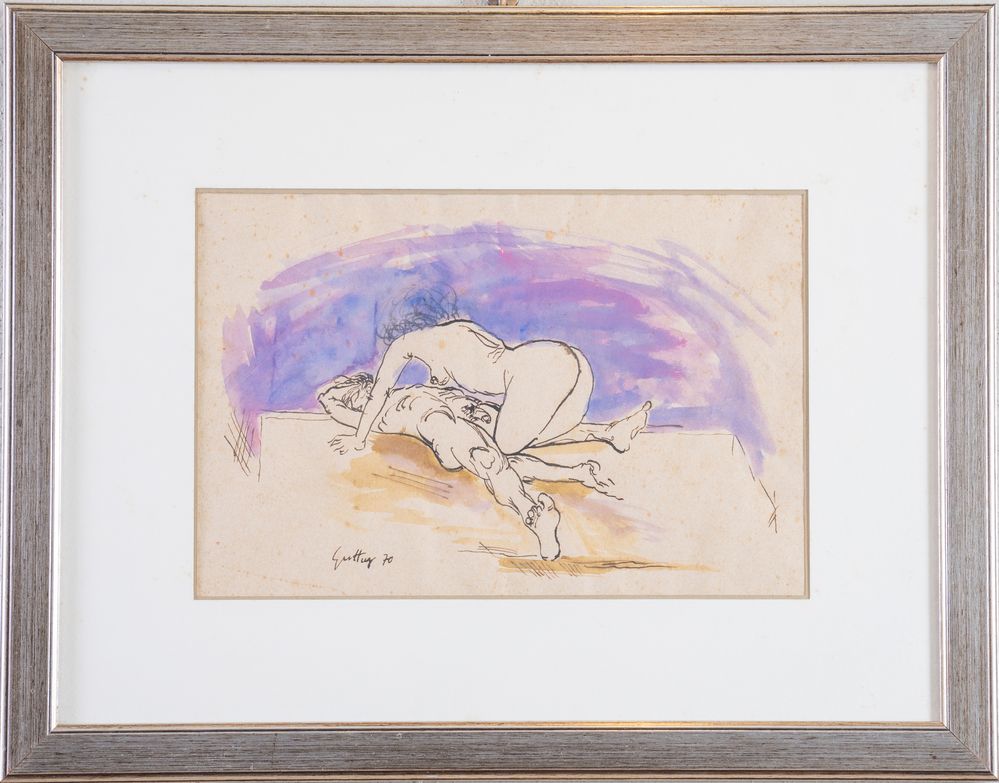 RENATO GUTTUSO (Bagheria 1911 - Roma 1987) "Senza titolo", 1970. Tecnica mista su carta. Cm 24x36. Opera firmata e datata in basso a sinistra Guttuso '70.