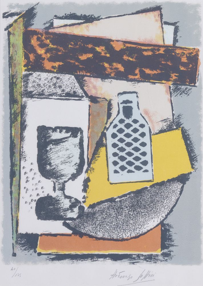 ARDENGO SOFFICI (Rignano sull'Arno 1879 – Vittoria Apuana 1964) "Natura morta". Litografia a colori su carta. Cm 70x50. Opera firmata in basso a destra Ardengo Soffici. Reca numeri di tiratura in basso a sinistra 40/125.