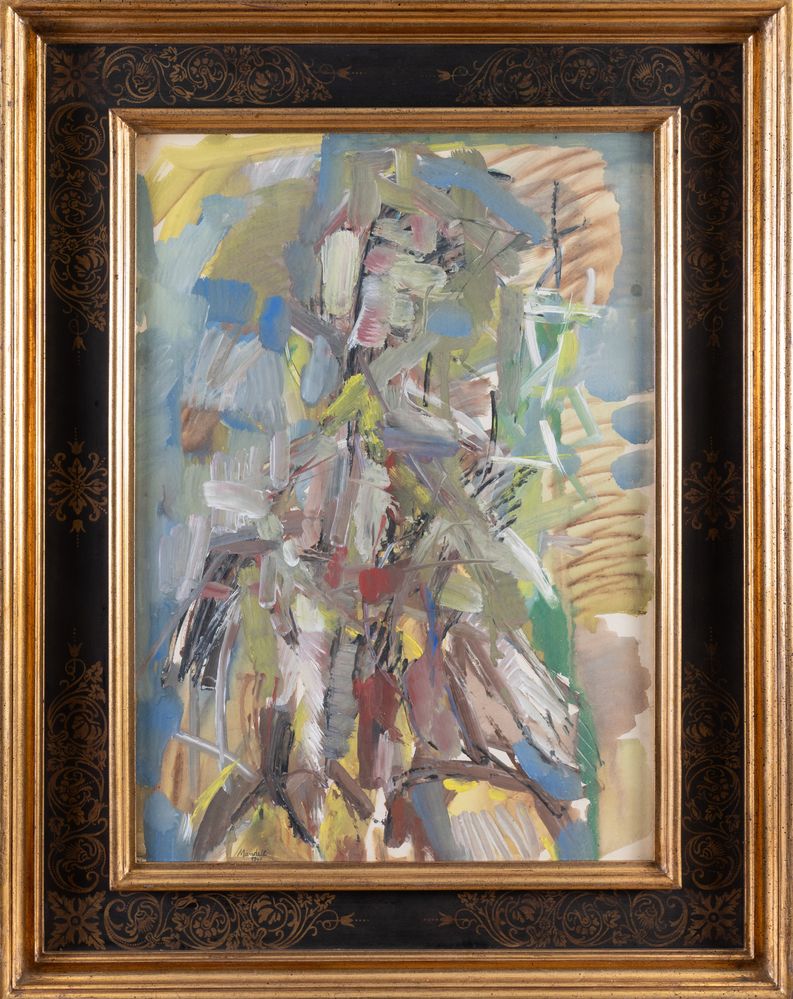 POMPILIO MANDELLI (Luzzara 1912 - Bologna 2006) “Composizione”, 1967. Olio e tecnica mista su carta. Cm 70x50. Opera firmata e datata in basso a sinistra Mandelli 1967.