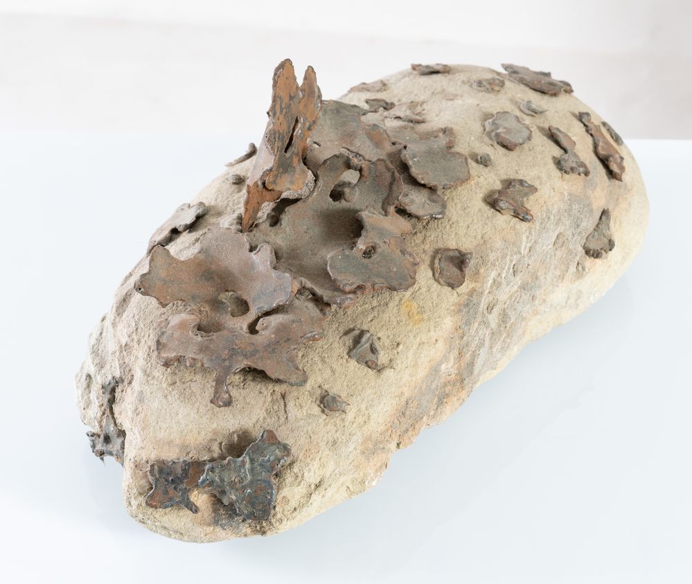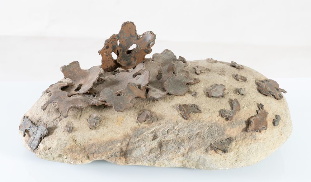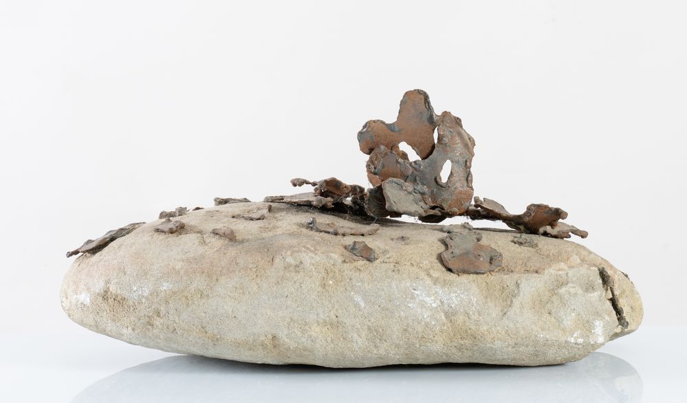 GERMANO SARTELLI (Imola 1925 - 2014) "Senza titolo". Ferro e pietra. Cm 18x40x20.