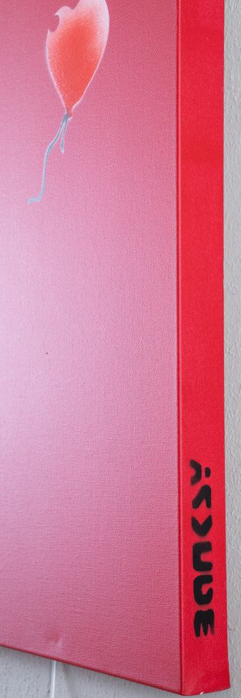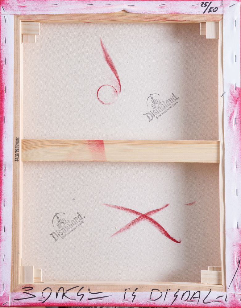 BANKSY (Bristol 1974) "Dismaland", 2015. Spray su tela. Cm 50x40. Opera firmata a lato Banksy. Al retro reca due timbri Dismaland. Al retro reca numeri di tiratura 25/50. Opera accompagnata da ticket d'ingresso a Dismaland.
