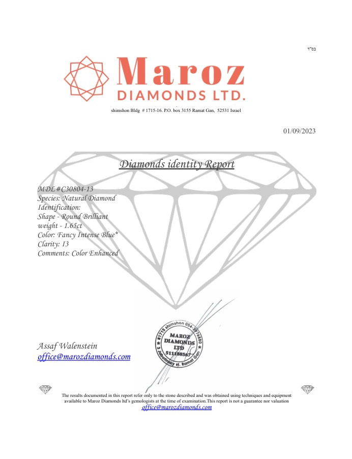 Lotto 43 | DIAMANTE COLORE ESALTATO 1,65 CARATI COLORE FANCY BLU INTENSO* - PUREZZA I3 -...