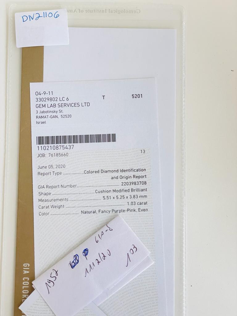 Lotto 90 | DIAMANTE 1,03 CARATI Natural fancy ROSA - PUREZZA I3 - TAGLIO CUSCINO -...