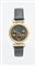 Cassa rotonda placcata oro, anse a cerniera snodate.