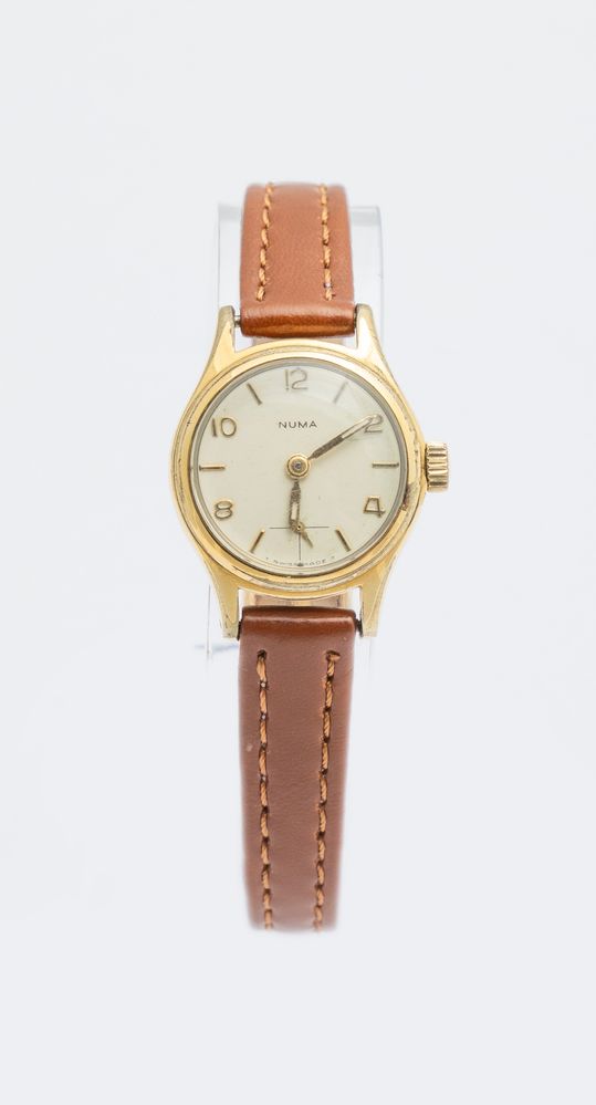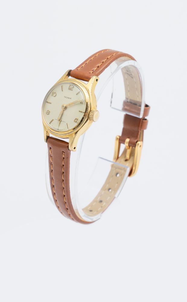 Numa Lady, anni 60 Cassa rotonda placcata oro. Quadrante argenté, numeri...