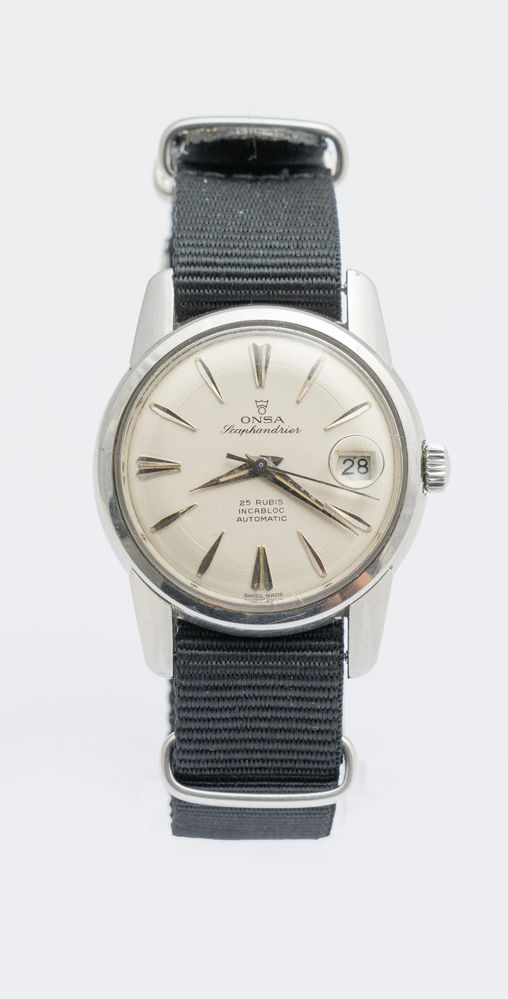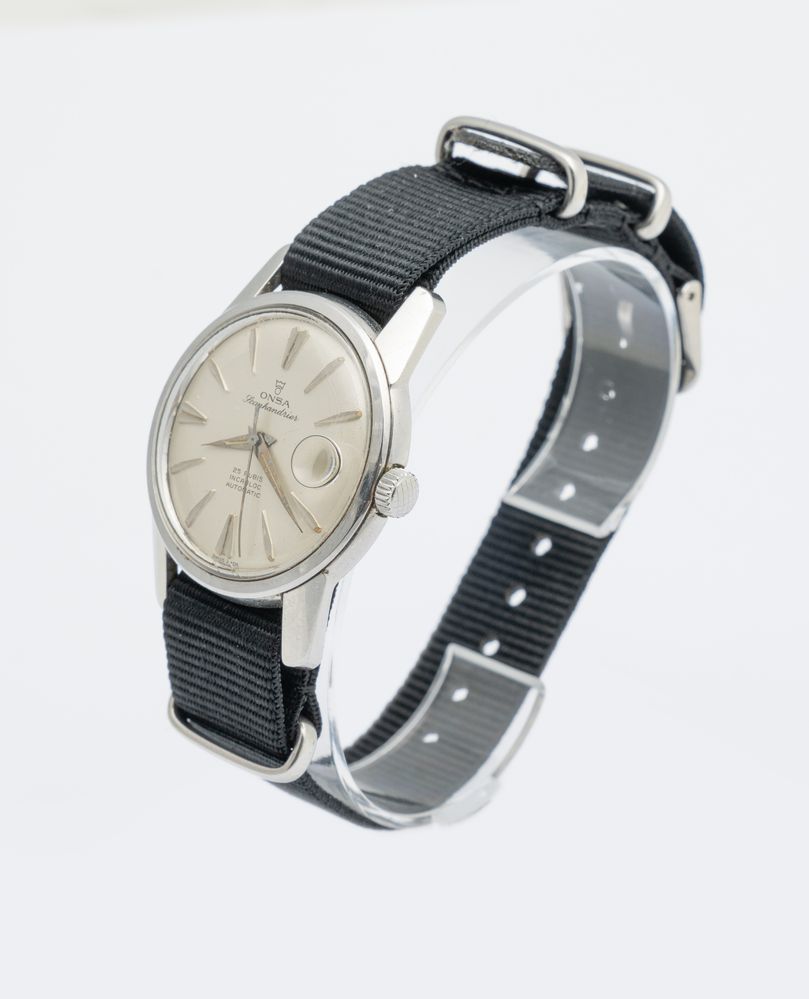 Onsa Scaphandrier, anni 60 Cassa rotonda Compressor in acciaio. Quadrante...
