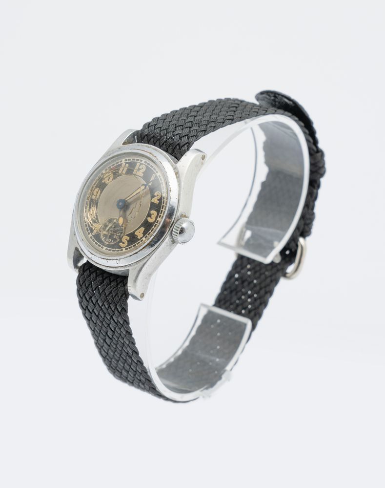 Solotempo anonimo, anni 40 Cassa rotonda in acciaio e metallo cromato....