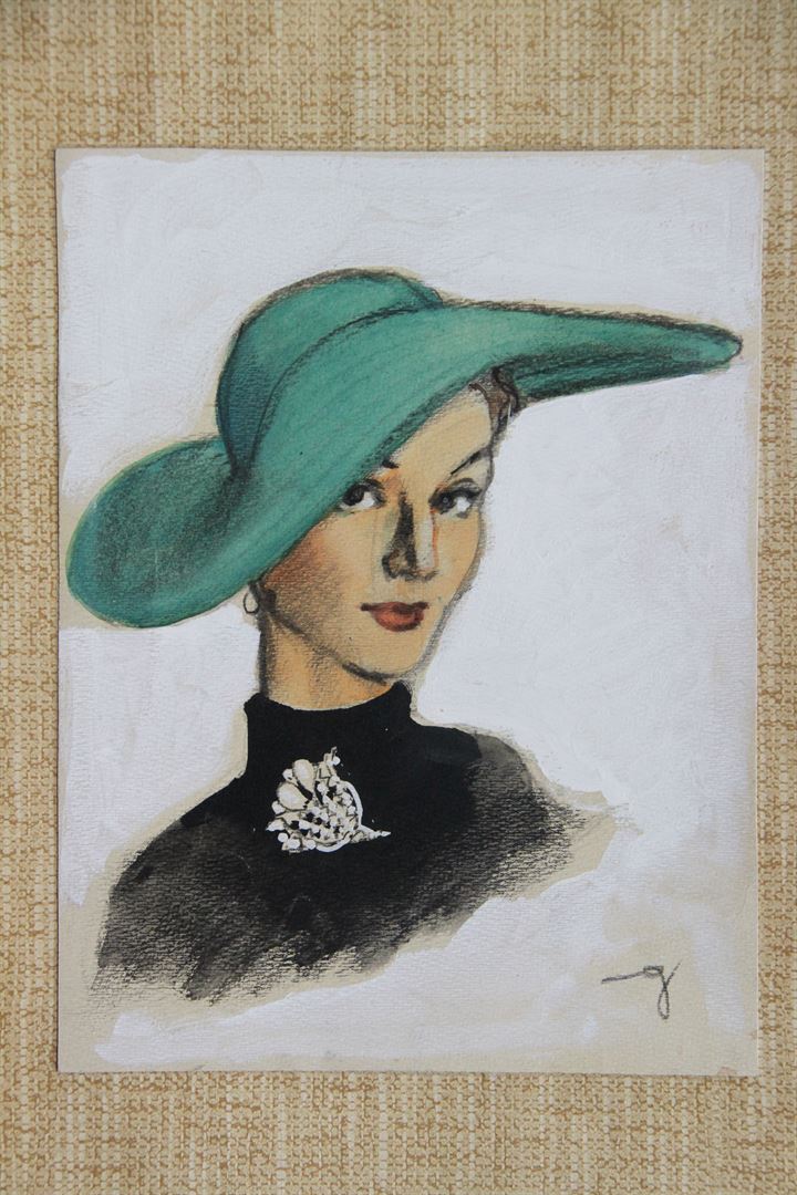 GOLIA (Eugenio Colmo) Torino 1885 - 1967 "Il cappello verde" 1947 28x21...