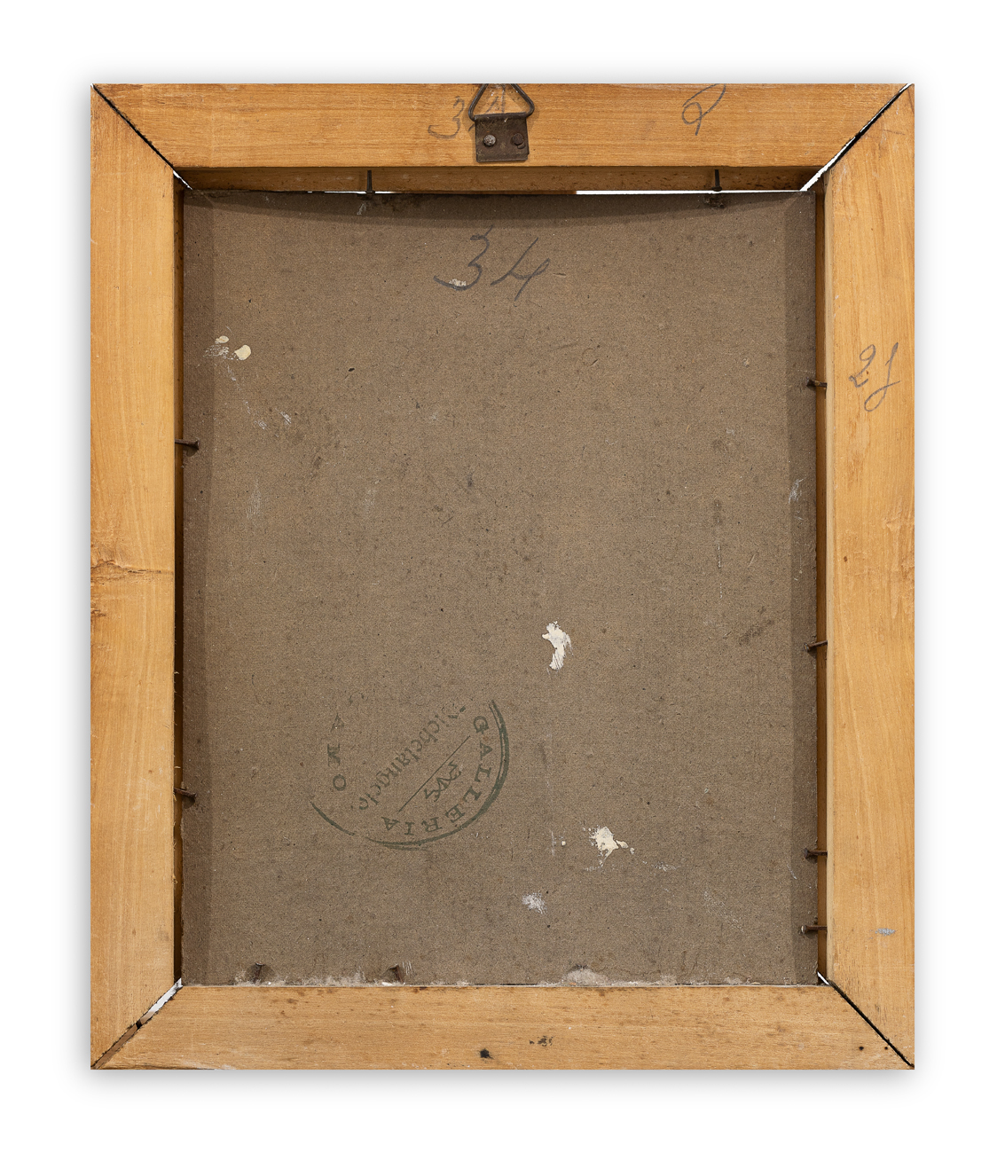 Timbro della Galleria Michelangelo (BG) al retro della tavola protettiva