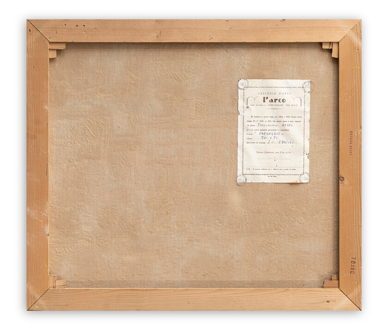 Etichetta e timbri della Galleria d'Arte L'Arco (SS) al retro