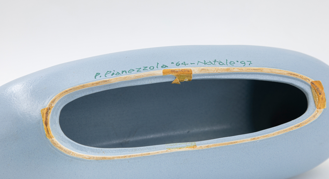 Firma, datazione e iscrizione "Natale '96" sotto la base