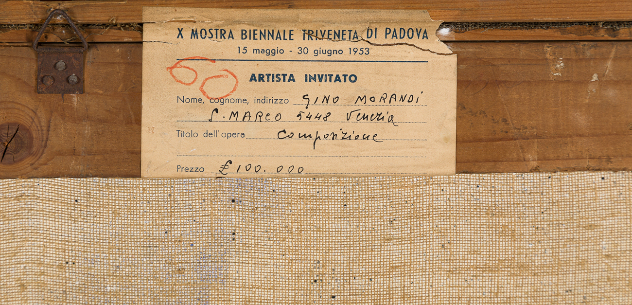 Etichetta della 'X Mostra Biennale Triveneta di Padova - 1953' al retro