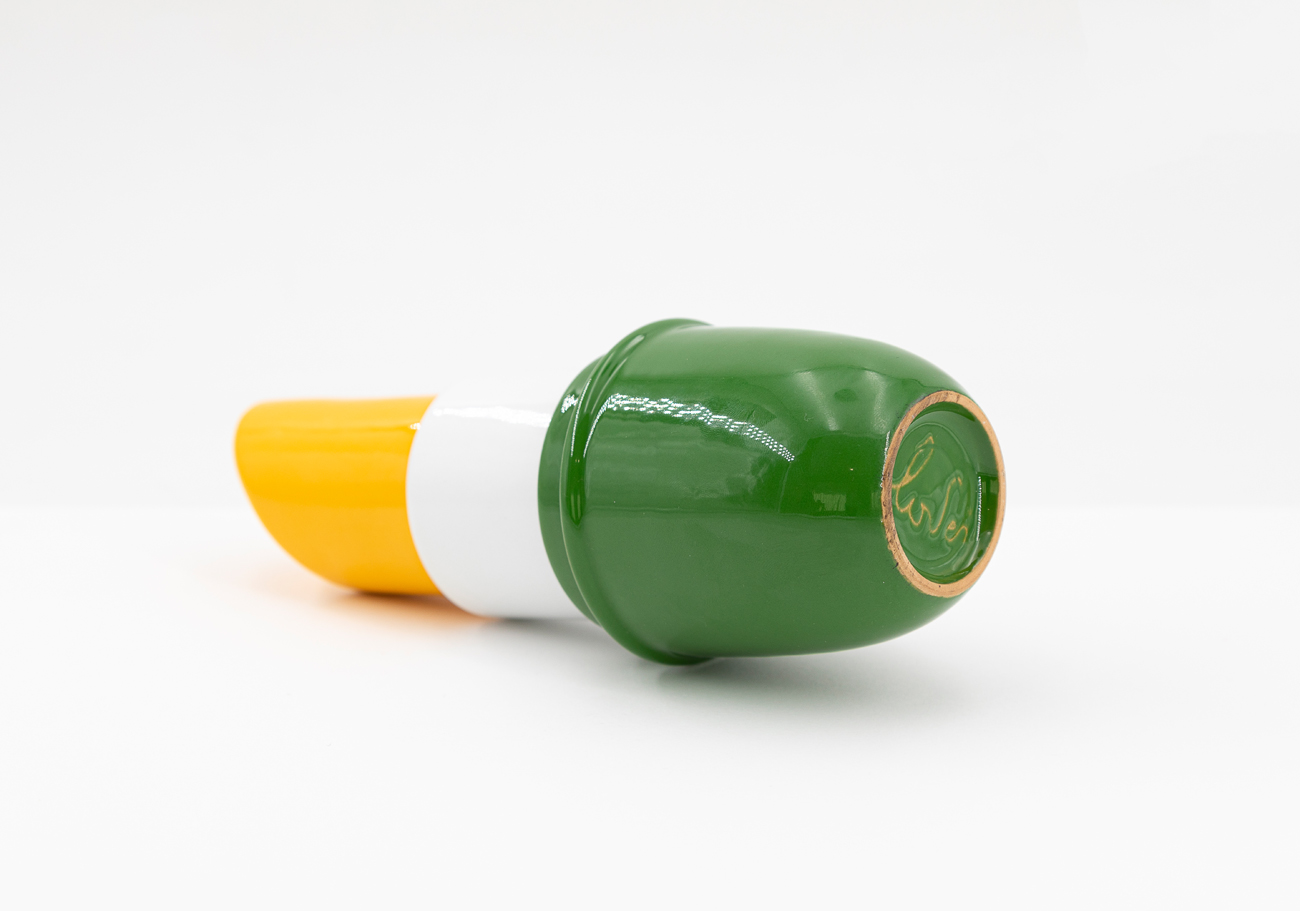 Scultura in terracotta smaltata con interventi a III fuoco in oro zecchino