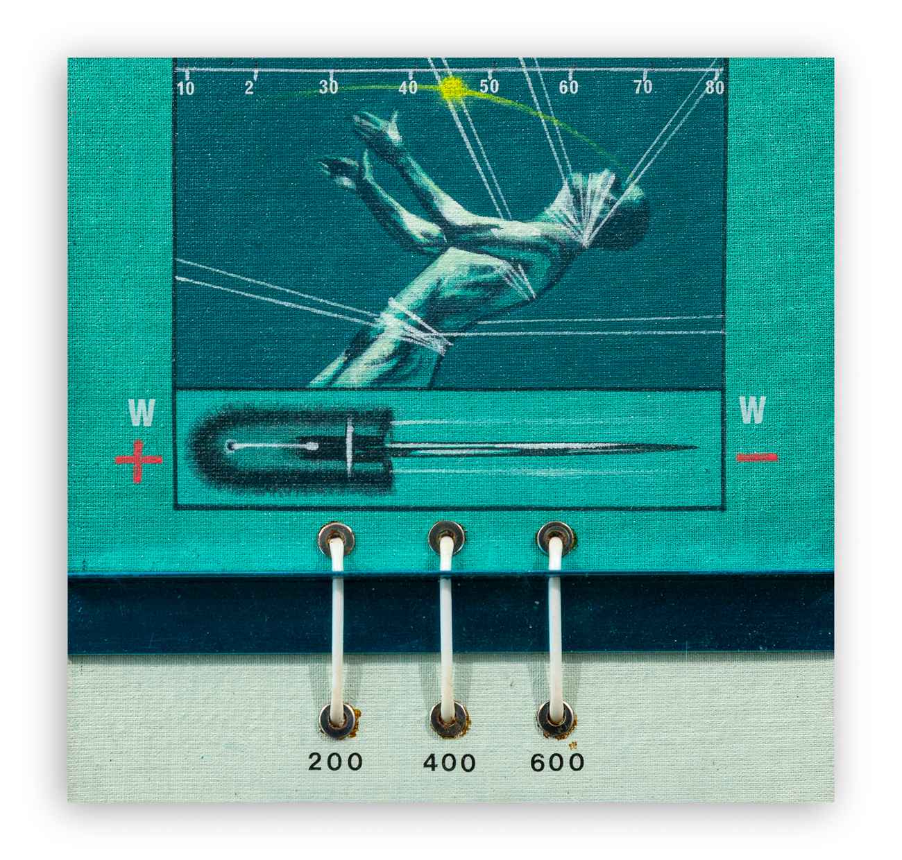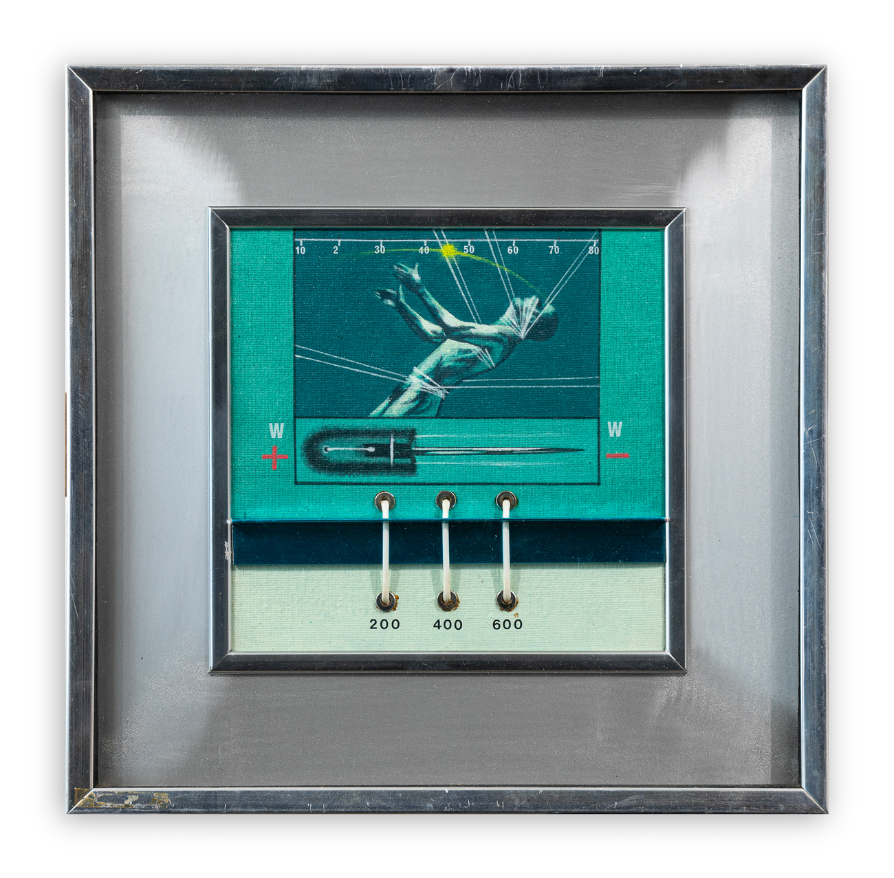 Tecnica mista e applicazioni di metallo e plastica su cartone telato