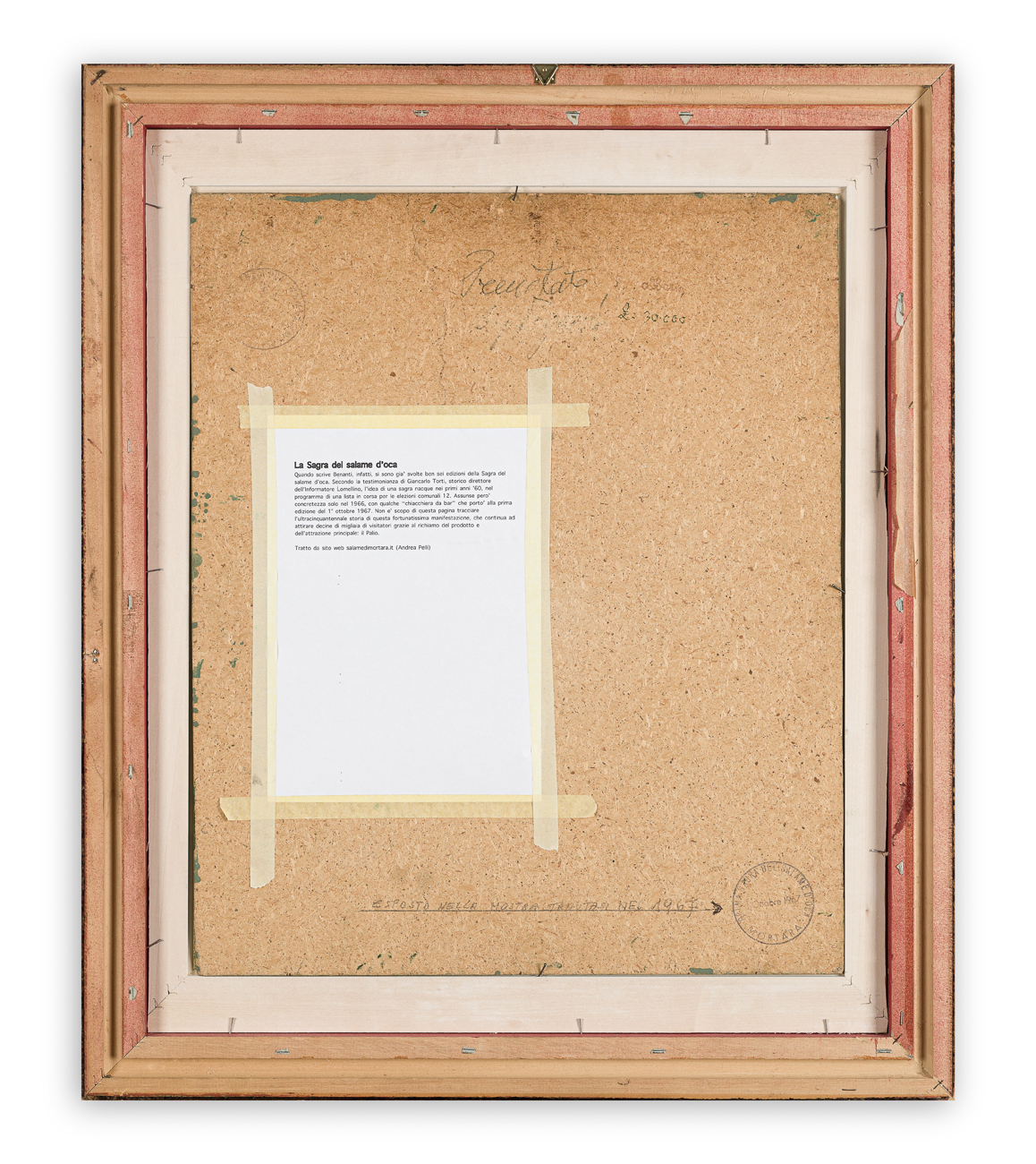 Timbro della Prima Sagra del Salame d'Oca di Mortara 1967 al retro
