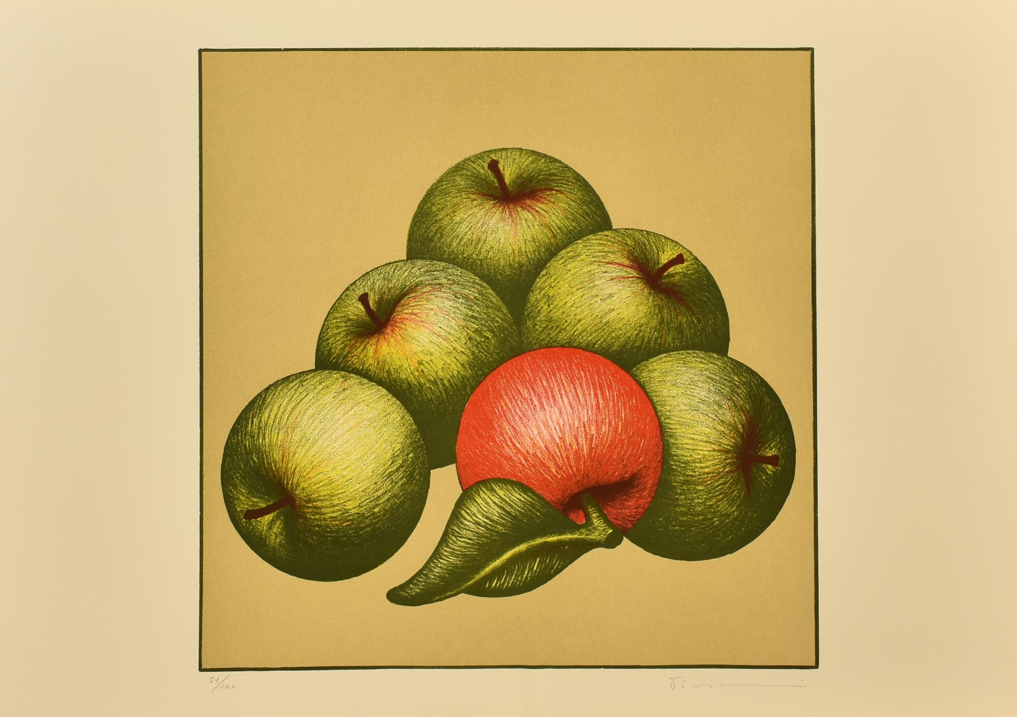 Lotto 34 | Vanni Viviani LA MELA SOLITARIA serigrafia su carta, cm 50x70; es. 51/100 firma