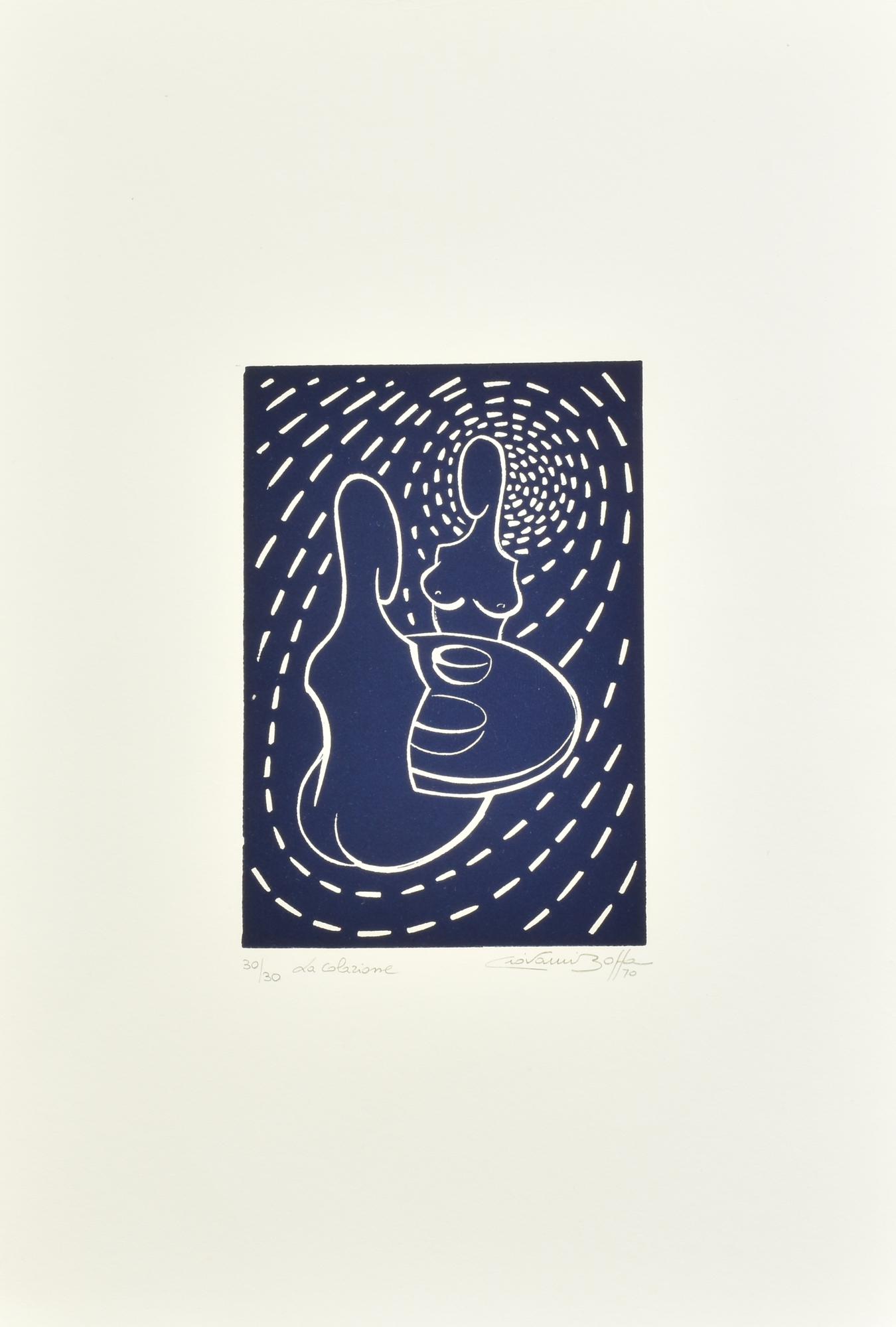 Giovanni Boffa LA COLAZIONE linoleumgrafia su carta, cm 48,5x33,5; es. 30/30...