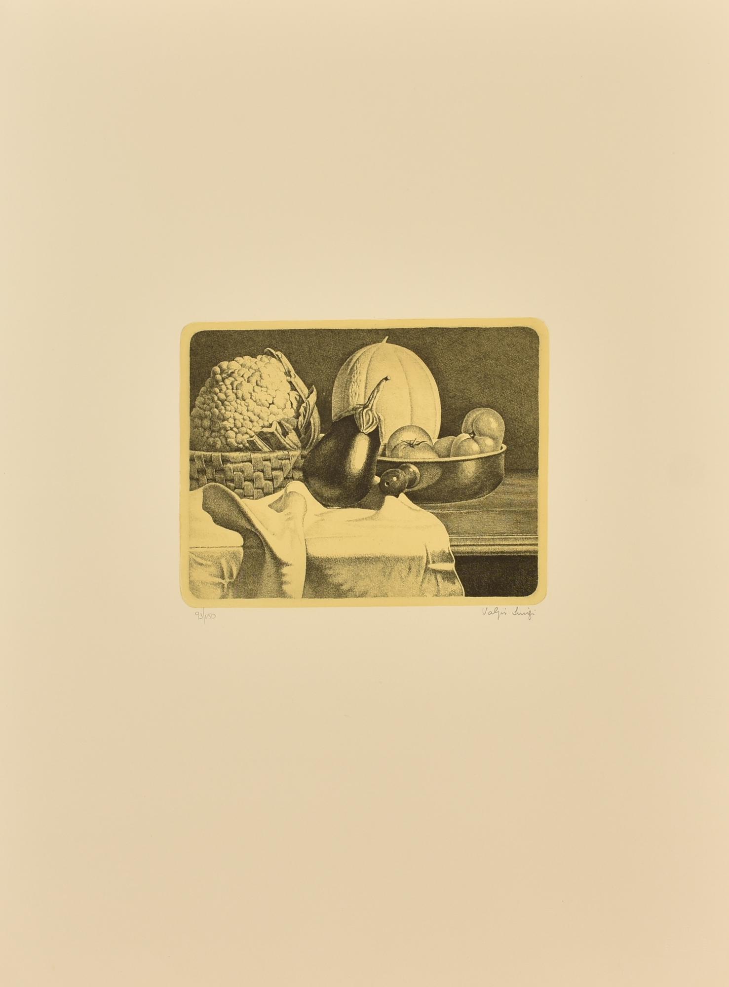 Luigi Volpi NATURA MORTA CON MELANZANA Incisione su carta, battuta cm...