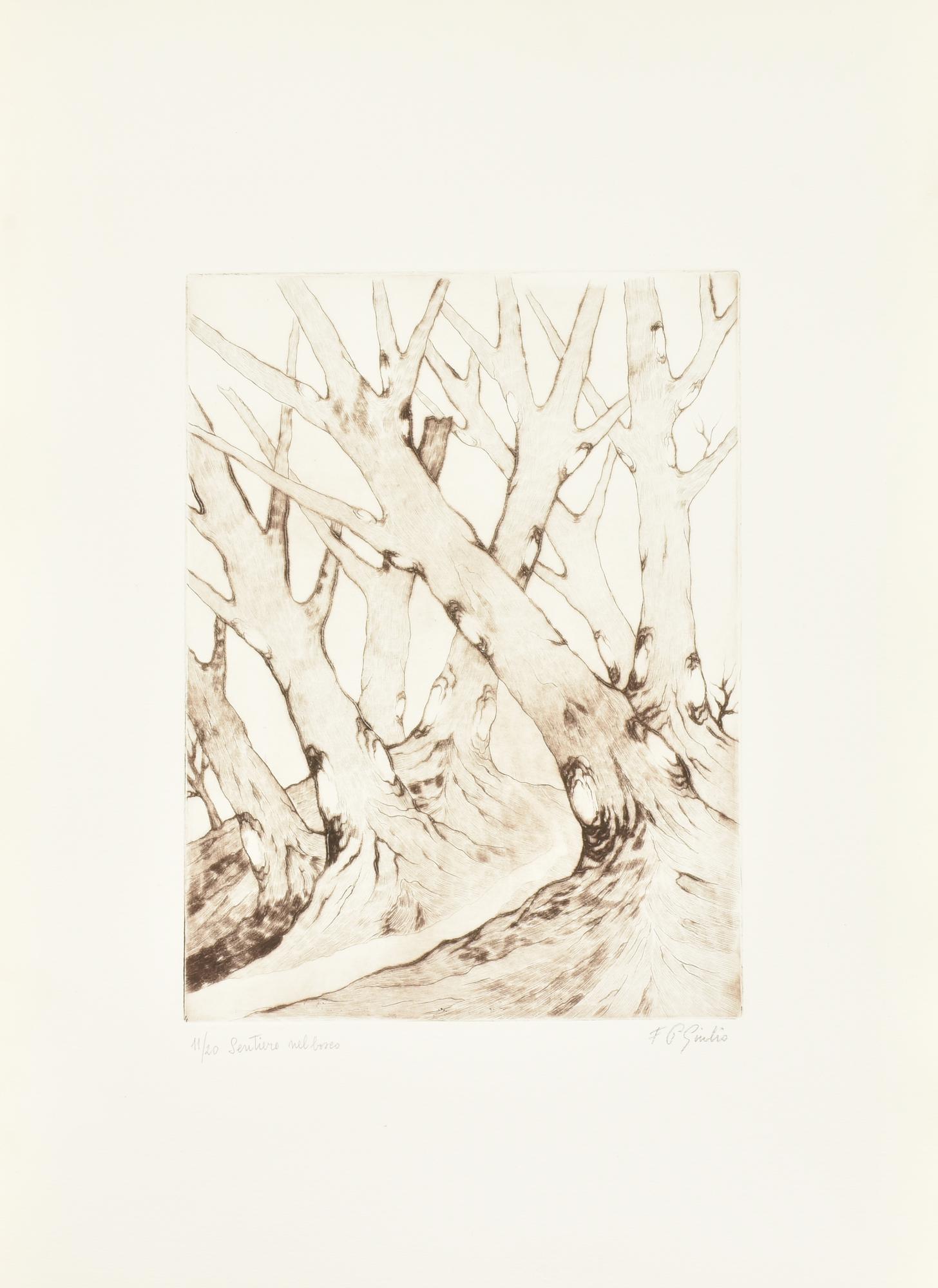 F. P. Giulio SENTIERI NEL BOSCO incisione su carta, battuta cm 27x20, su...