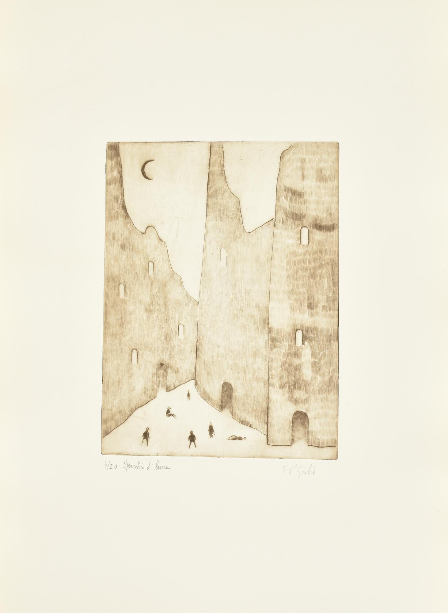 F. P. Giulio SPICCHIO DI LUNA incisione su carta, battuta cm 24x18, su foglio...