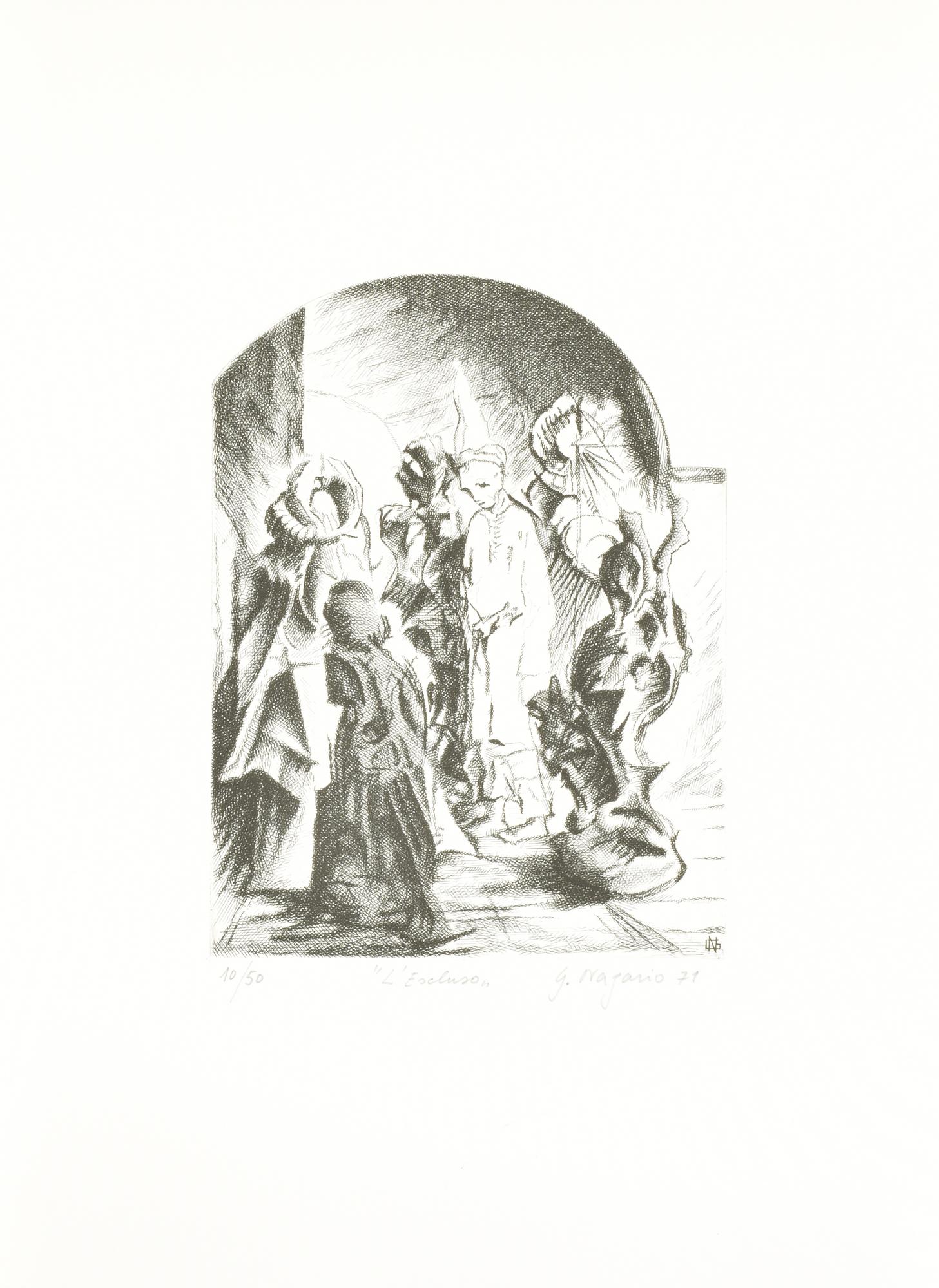 Lotto 113 | Gaudenzio Nazario L'ESCLUSO incisione su carta, battuta cm 24,5x18,5, su...