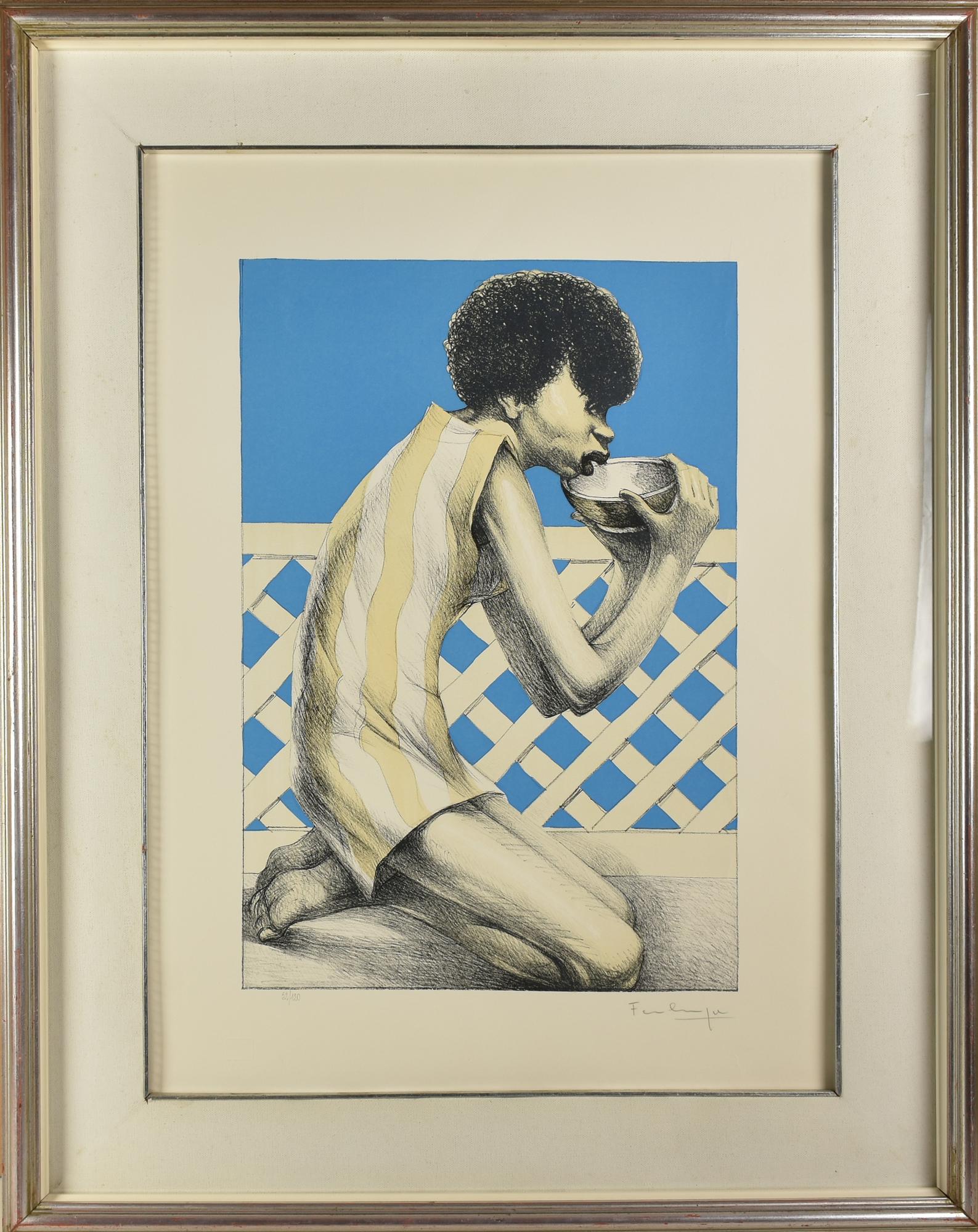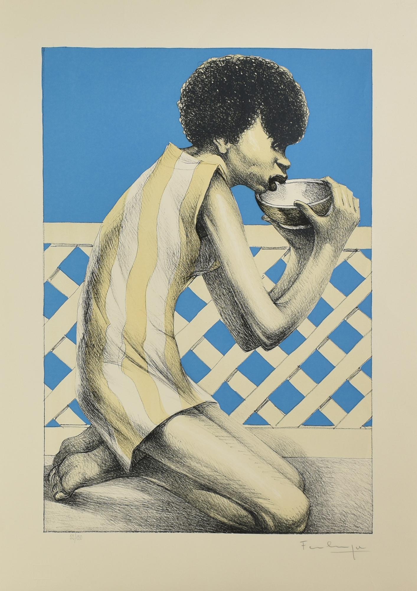 Lotto 139 | Franco Ferlenga DONNA CON CIOTOLA litografia su carta, cm 70x50; es. 52/120...
