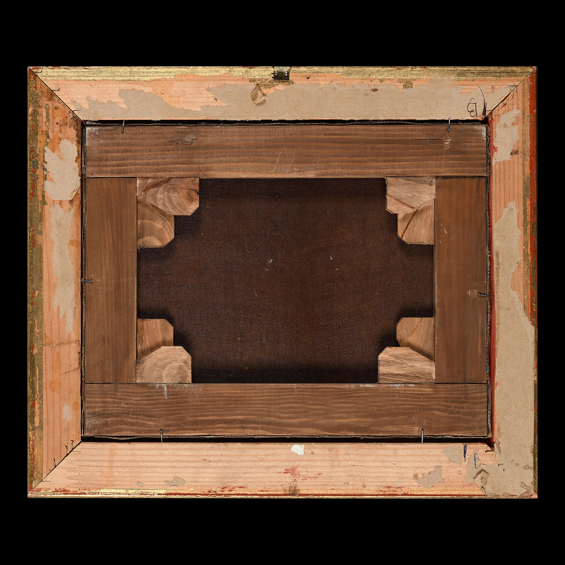 Pittore romano della fine del XVIII secolo, Veduta da una grotta Olio su tela, dimensioni ext. 33,5x40, int. 24x31,5 cm.