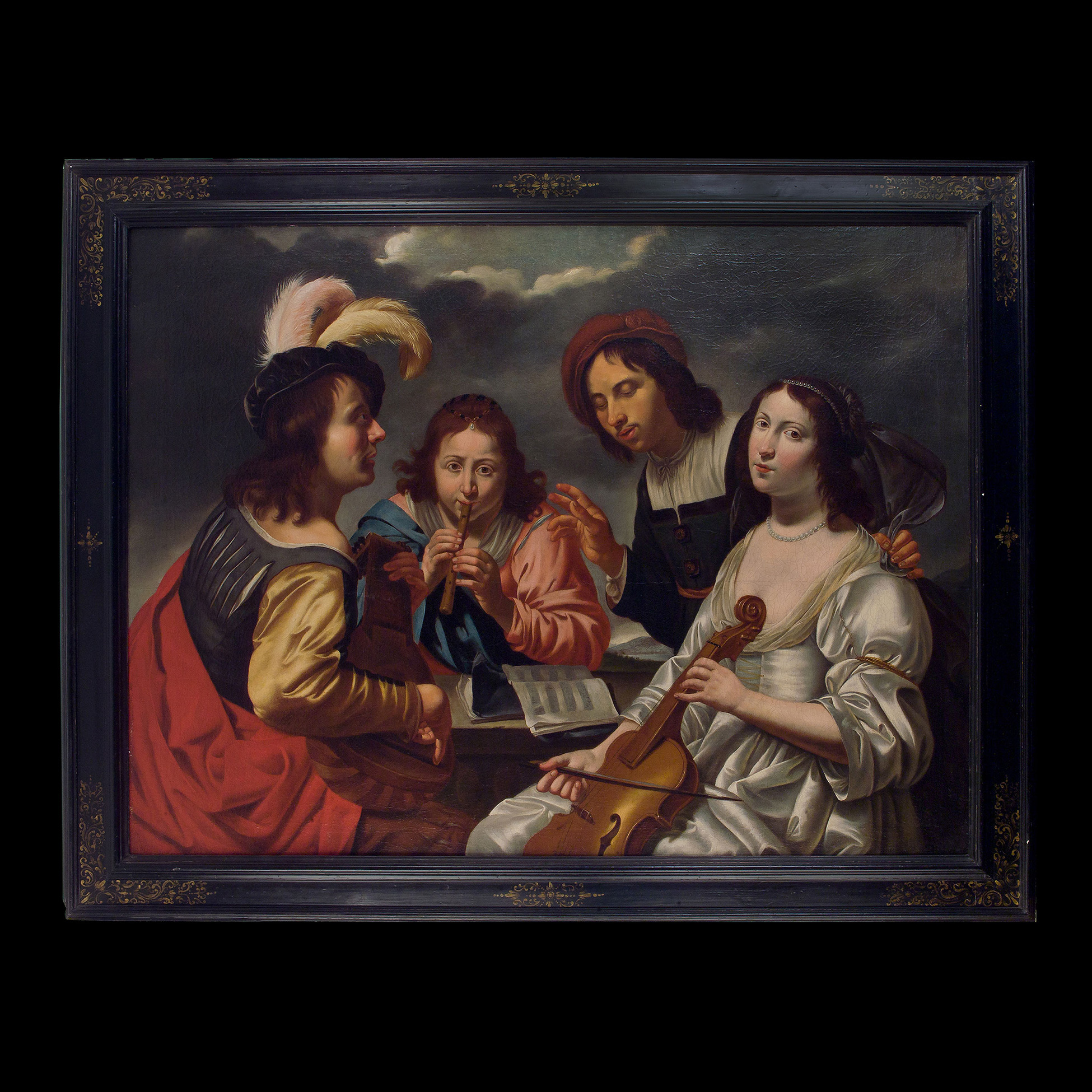 Pittore fiammingo della metà del XVII secolo, Il concertino Olio su tela, dimensioni ext. 158x173, int. 116x153 cm.
