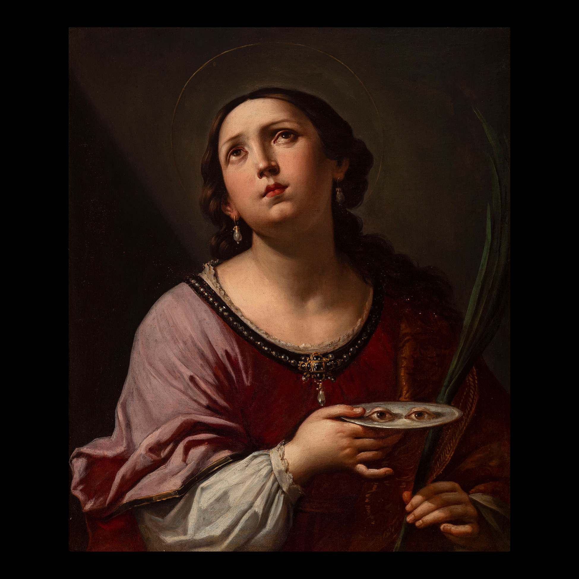Pier Francesco Cittadini (Milano 1613/16 ca. - Bologna 1681), Santa Lucia Pubblicazioni: M. Pulini, in 'Donne nell'Arte. Da Tiziano a Boldini', catalogo della mostra a cura di D. Dotti, Brescia, 2020, pp. 22,23. M. Pulini, Rimini per Simone Cantarini, Rimini, 2012, n. 22. M. Pulini, 'Pier Francesco Cittadini. Il fare grande, gli oggetti di ferma e il paesare con piccole figure', in 'Dipinti inediti del Barocco italiano' a cura di F. Petrucci, F. Peretti, Ariccia, 2014, pp. 27-42. Olio su tela, dimensioni 75x65 cm.
