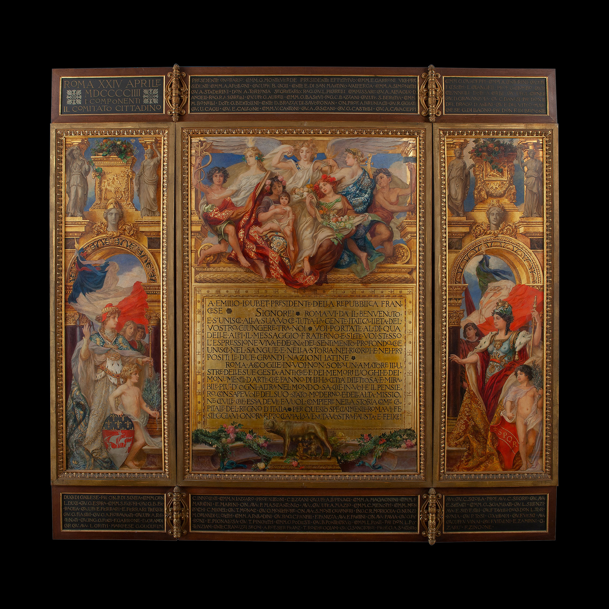 Giuseppe Cellini (Roma 1855 - 1940), Trittico ad ante celebrativo, dono della città di Roma al presidente francese Émile Loubet nell'anno 1904