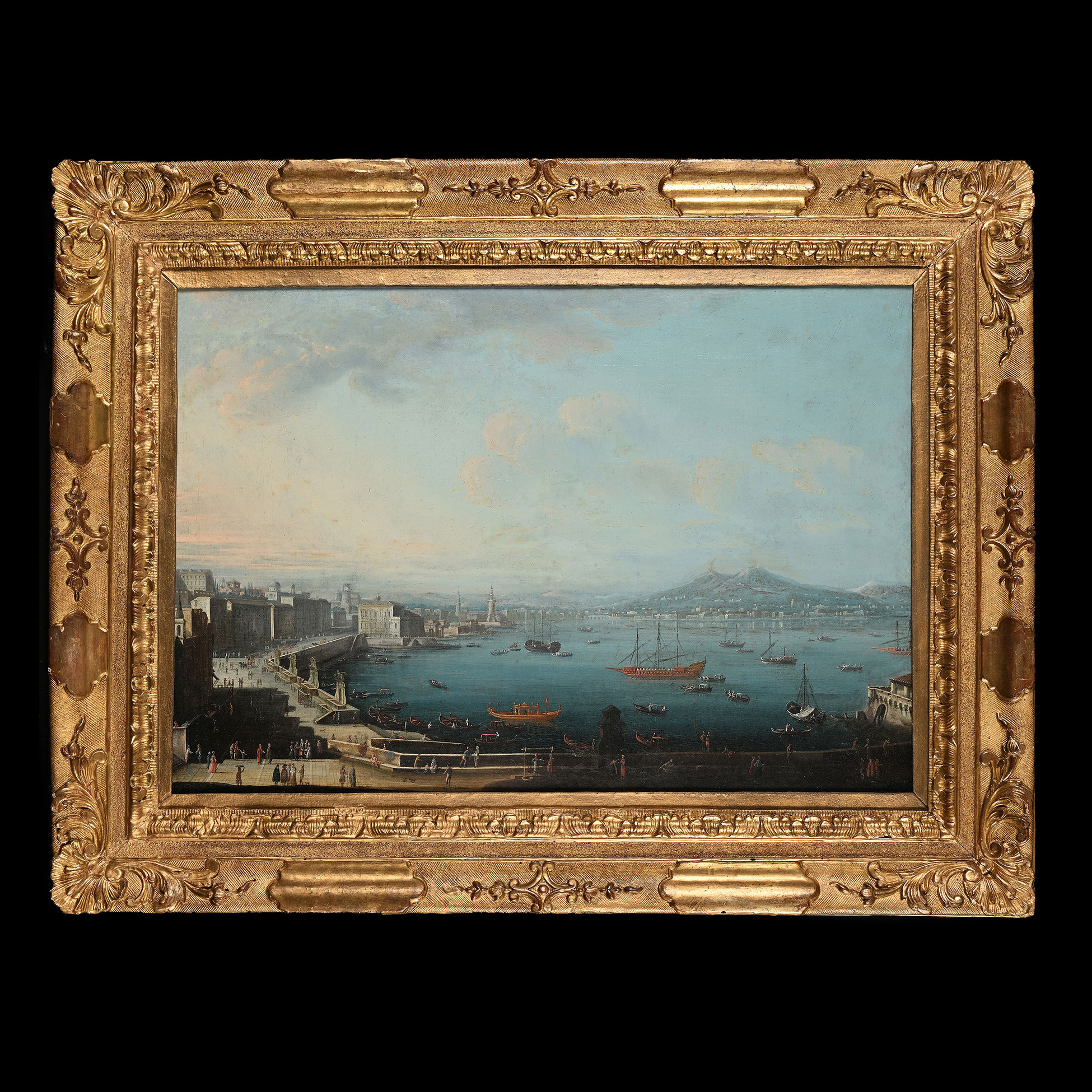 Pietro Antoniani (Milano, circa 1740 - 1805), attr.a, Veduta del Golfo di Napoli Olio su tela, dimensioni ext. 44,5x64,5, int. 63,5x82 cm.