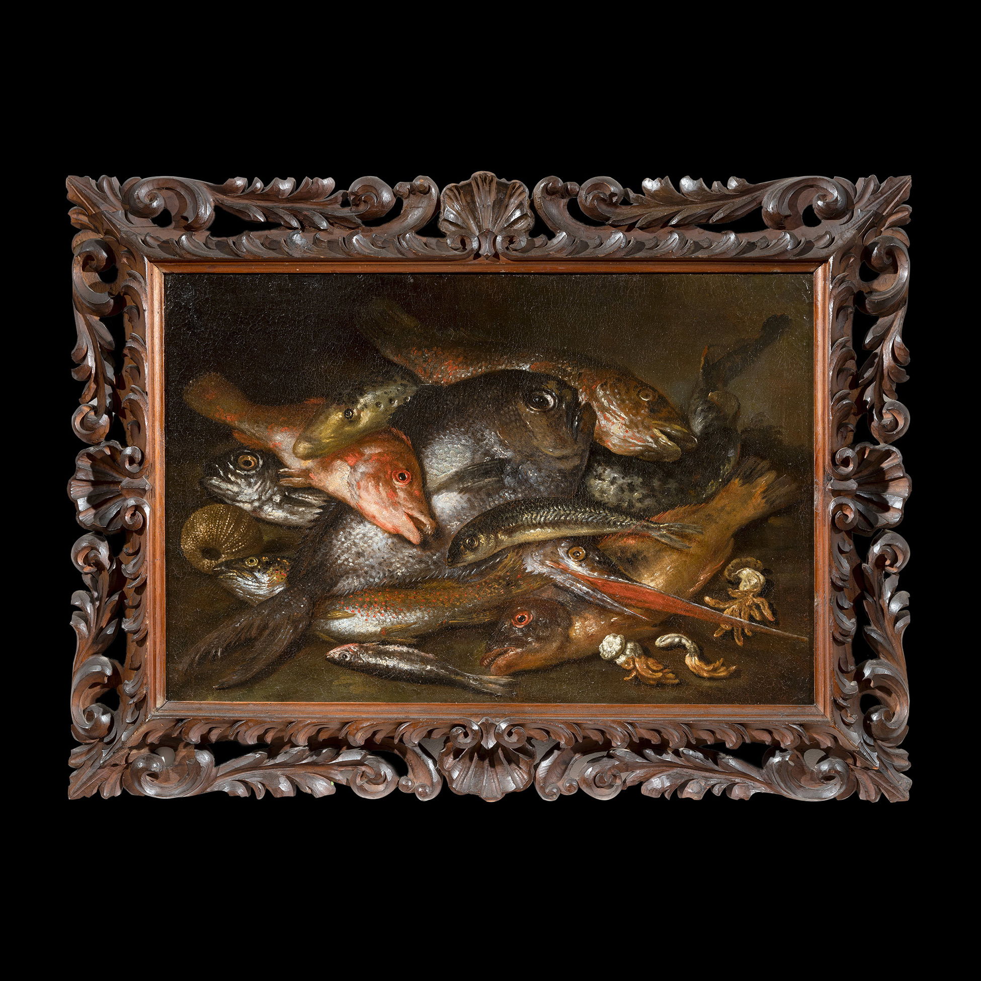 Giuseppe Recco (Napoli 1634 - Alicante 1695), Pesci e molluschi Provenienza: Villa i Pitti. Olio su tela, dimensioni 45,5x67 cm.