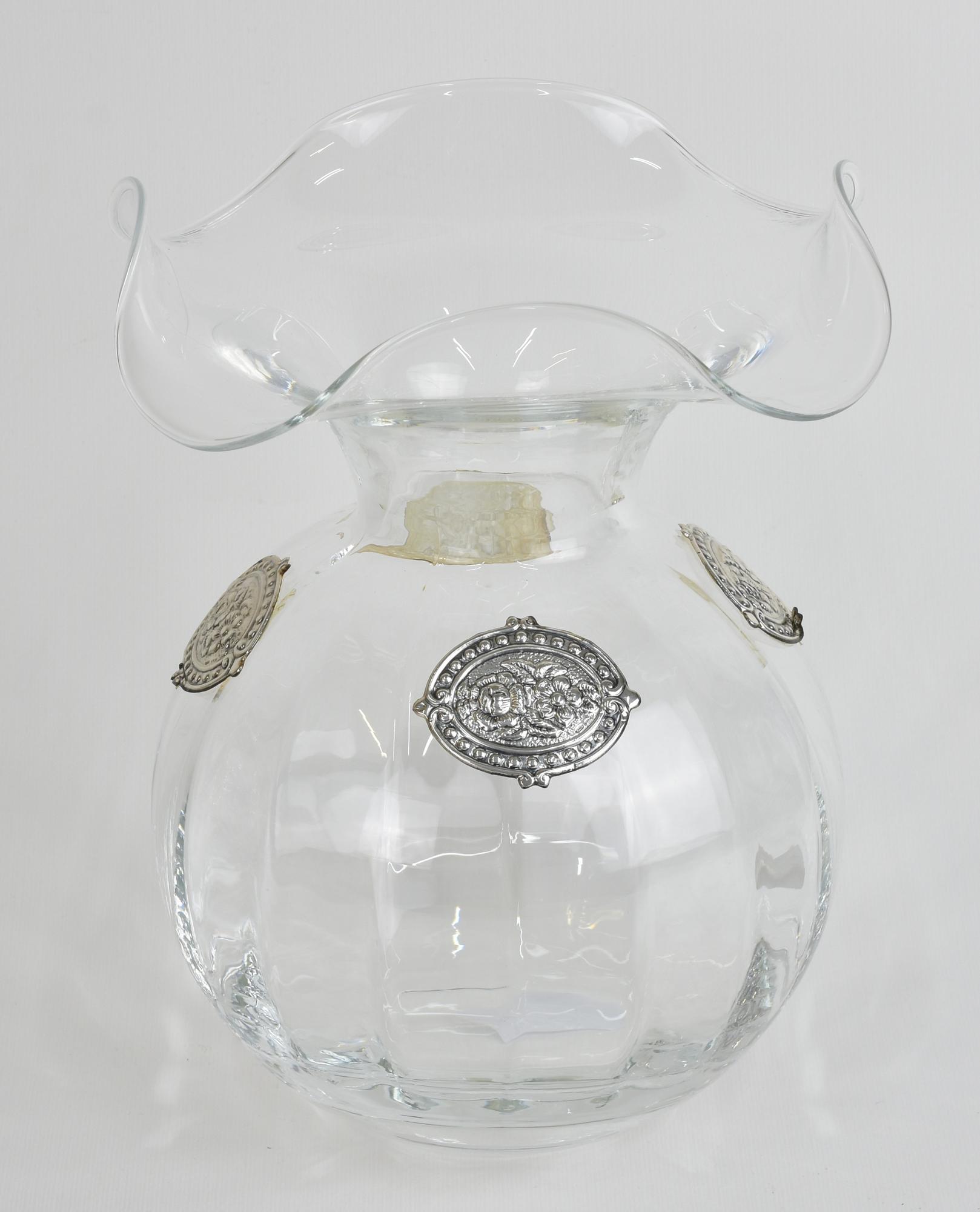 VASO IN VETRO con decorazione in argento Sterling 925 alt. cm 25