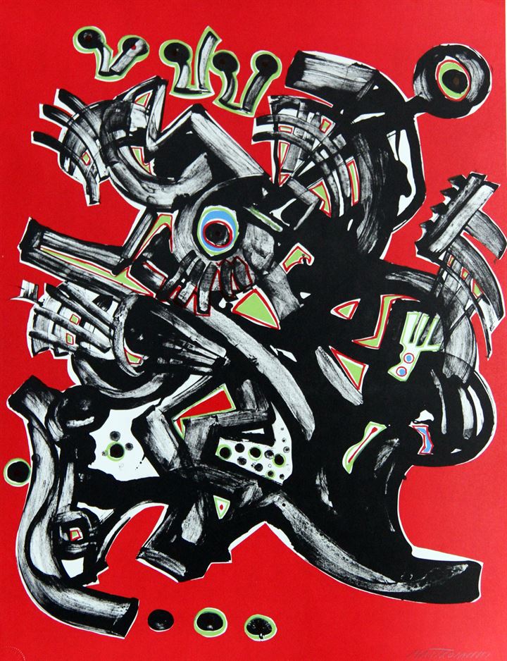 Litografia facente parte della suite "Fantasie di Umberto Mastroianni", stampatore litografico Antonio Geda, editore Espolito, Torino