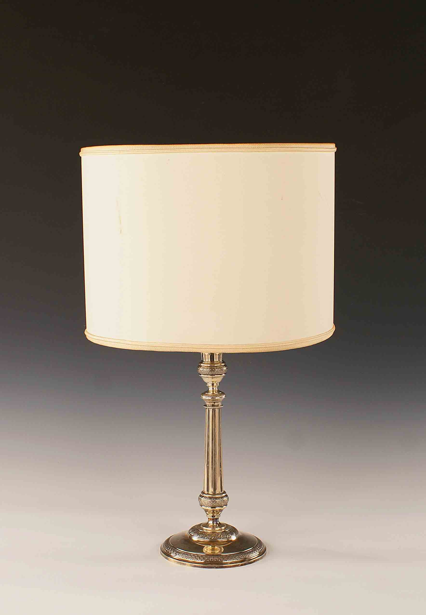 Candeliere elettrificato in argento completo di paralume, XIX secolo, h. cm....