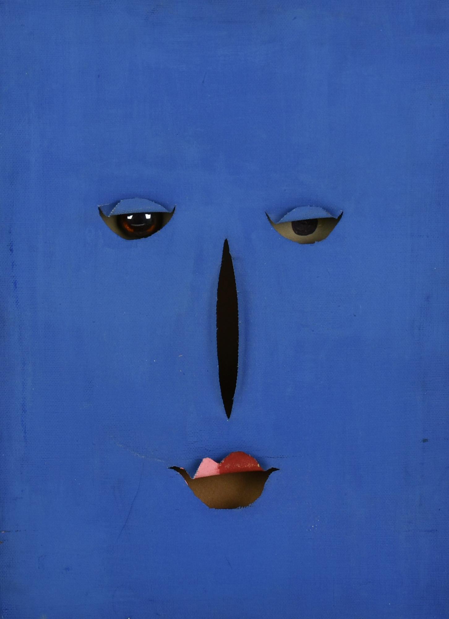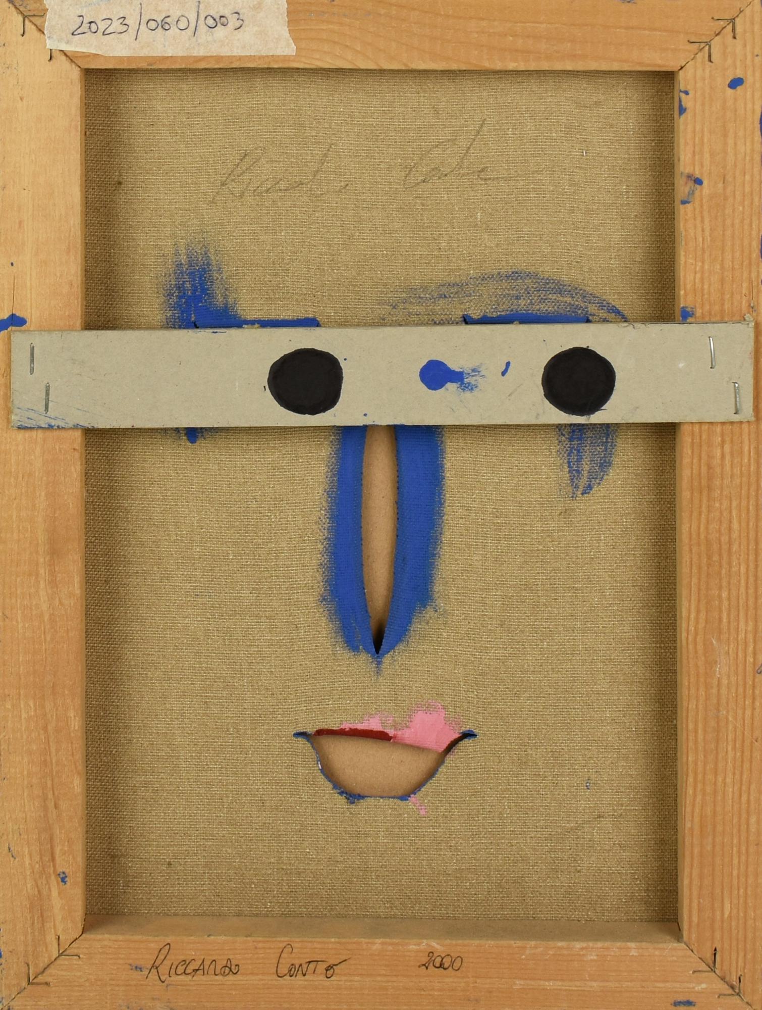 Riccardo Conte VOLTO IN BLU, 2000 tecnica mista su tela, cm 34x25 sul retro:...
